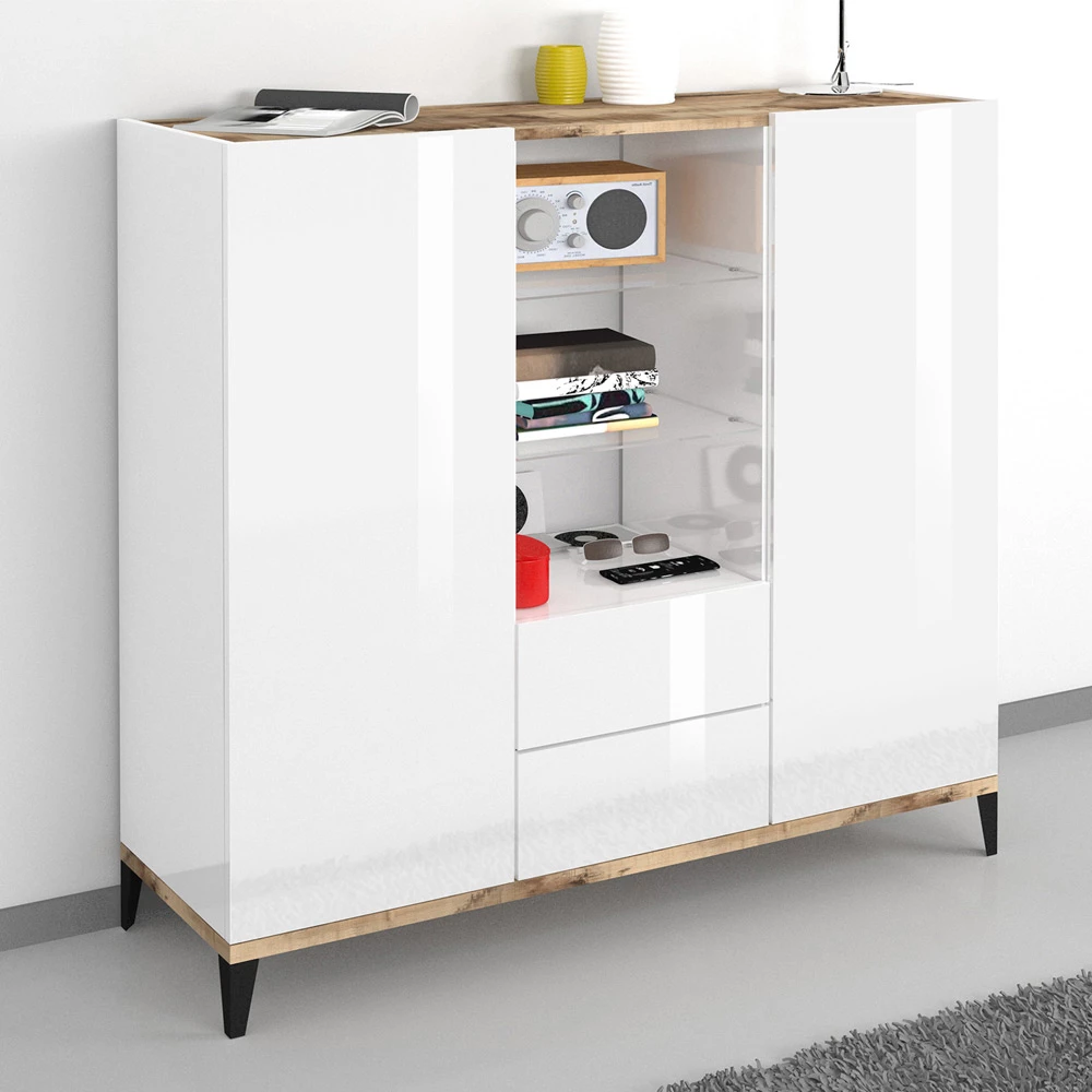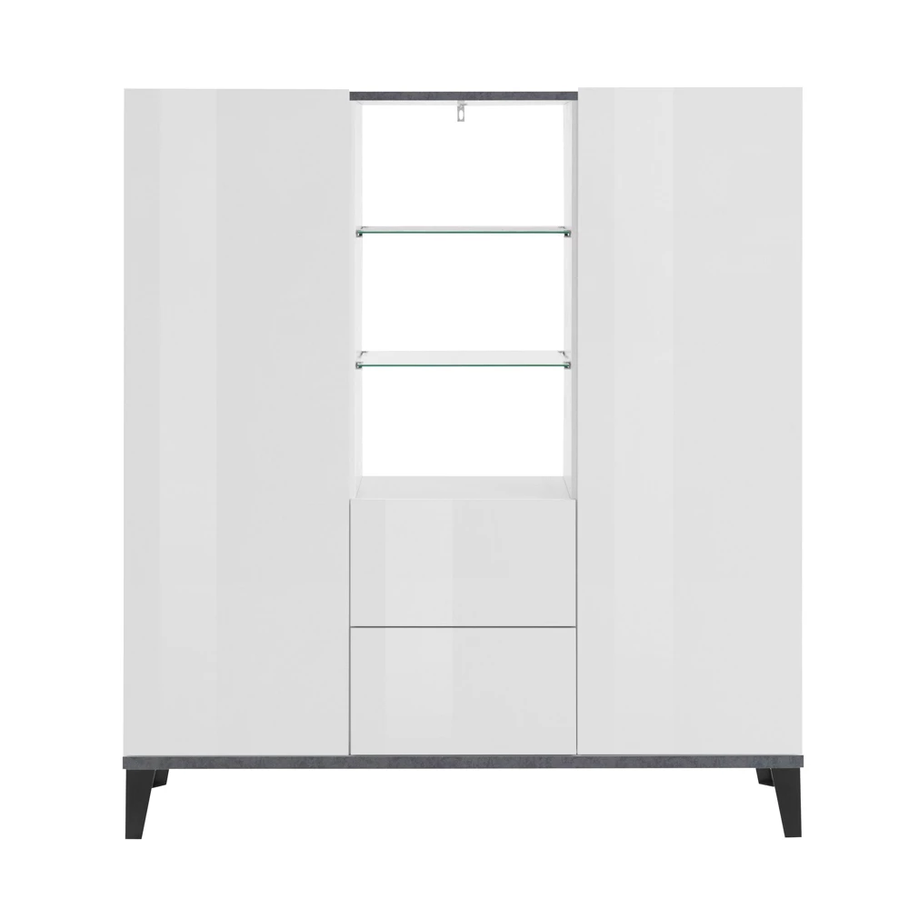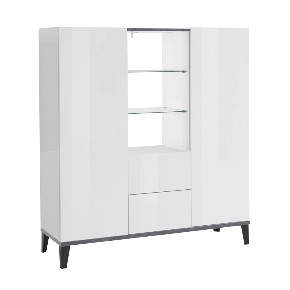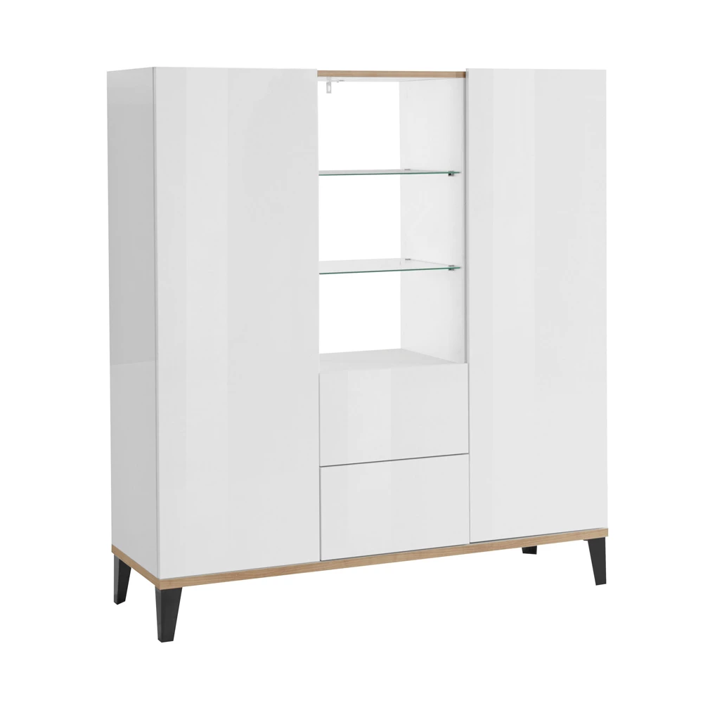 2-deurs melaminehouten dressoir met schuifladen en glazen planken Made in Italy.