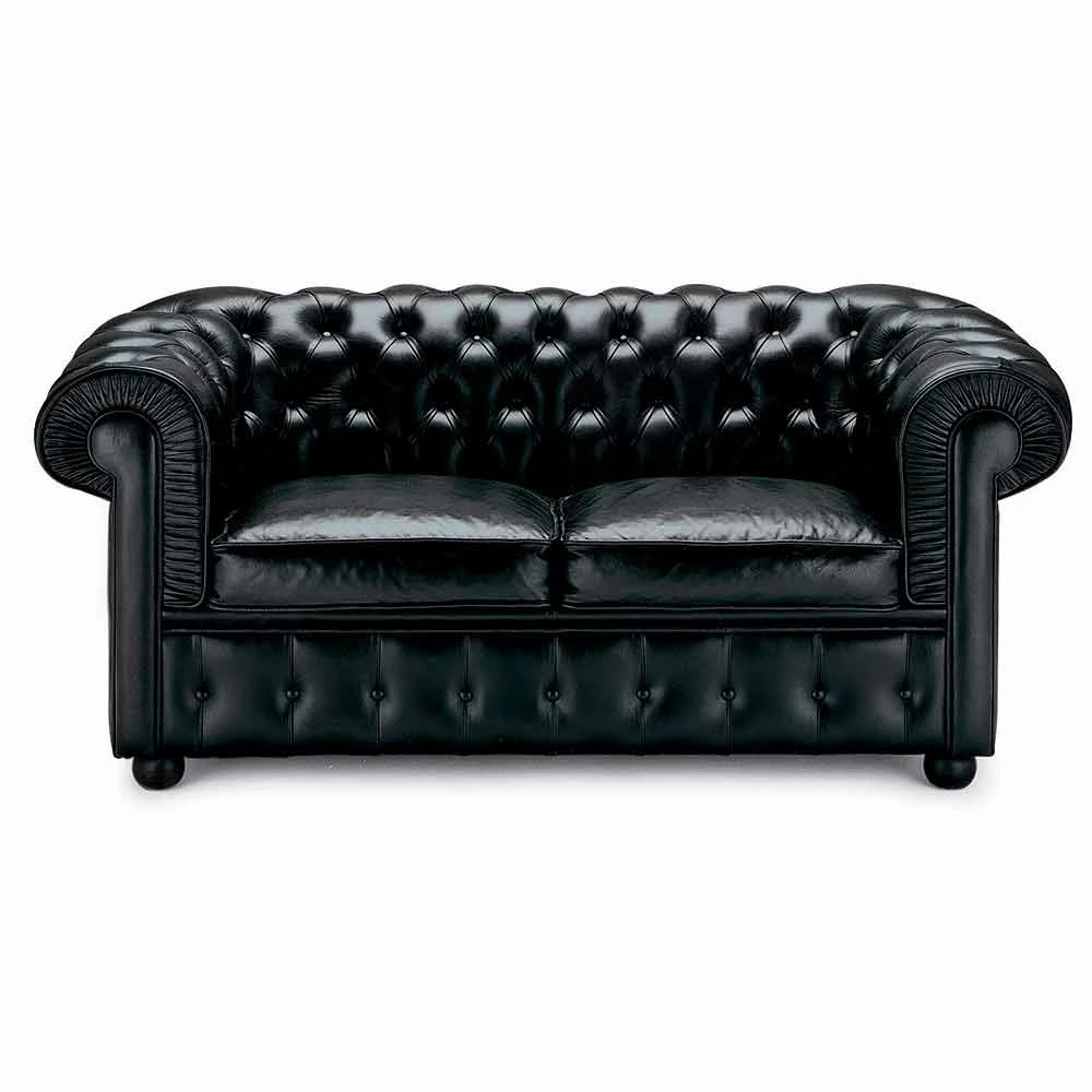 Klassieke 2-zitsbank in leer met houten poten Made in Italy.