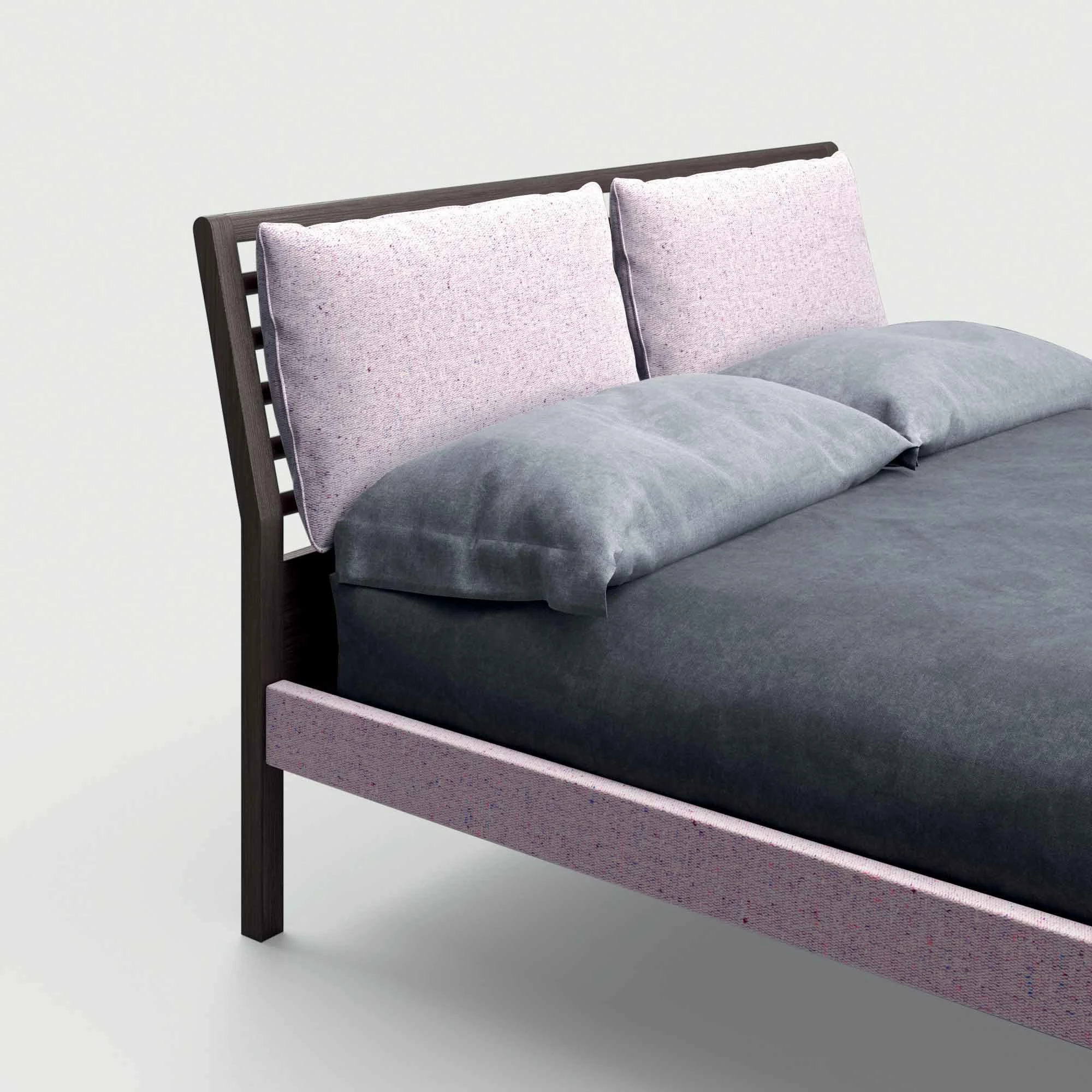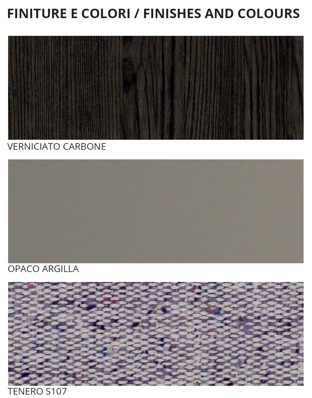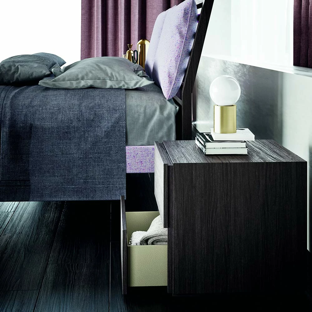 Slaapkamermeubel bestaande uit 5 elementen volledig gemaakt in Italië . De samenstelling omvat een tweepersoonsbed in met houtskool gebeitst hout met een bedframe bekleed met stof die past bij de twee kussens die het hoofdeinde bedekken, een nachtkastje met twee lades in met houtskool gebeitst hout, een lange ladekast / nachtkastje in matte kleilak, een hoge ladekast (samengesteld uit 5 modulaire elementen) en ladekast met 6 lades (bestaande uit 6 modulaire elementen) in antraciet gebeitst hout en leem mat gelakt. Uit de zorgvuldige analyse van verschillende vormen, volumes en maten, wordt een frisse en jonge omgeving geboren, gekenmerkt door een zacht en comfortabel bed dat zorgt voor een kwaliteitsvolle rust . De esthetiek wordt gecombineerd met de andere elementen van de compositie voor een verfijnde harmonie van stijlen en kleurnuances die de nachtelijke omgeving verlichten, terwijl het ook de mogelijkheid biedt om de inrichtingsoplossingen aan te passen dankzij een modulair systeem waarmee u de ruimte aan elke ruimte kunt aanpassen nodig hebben en hun creativiteit en persoonlijke smaak de vrije loop laten.