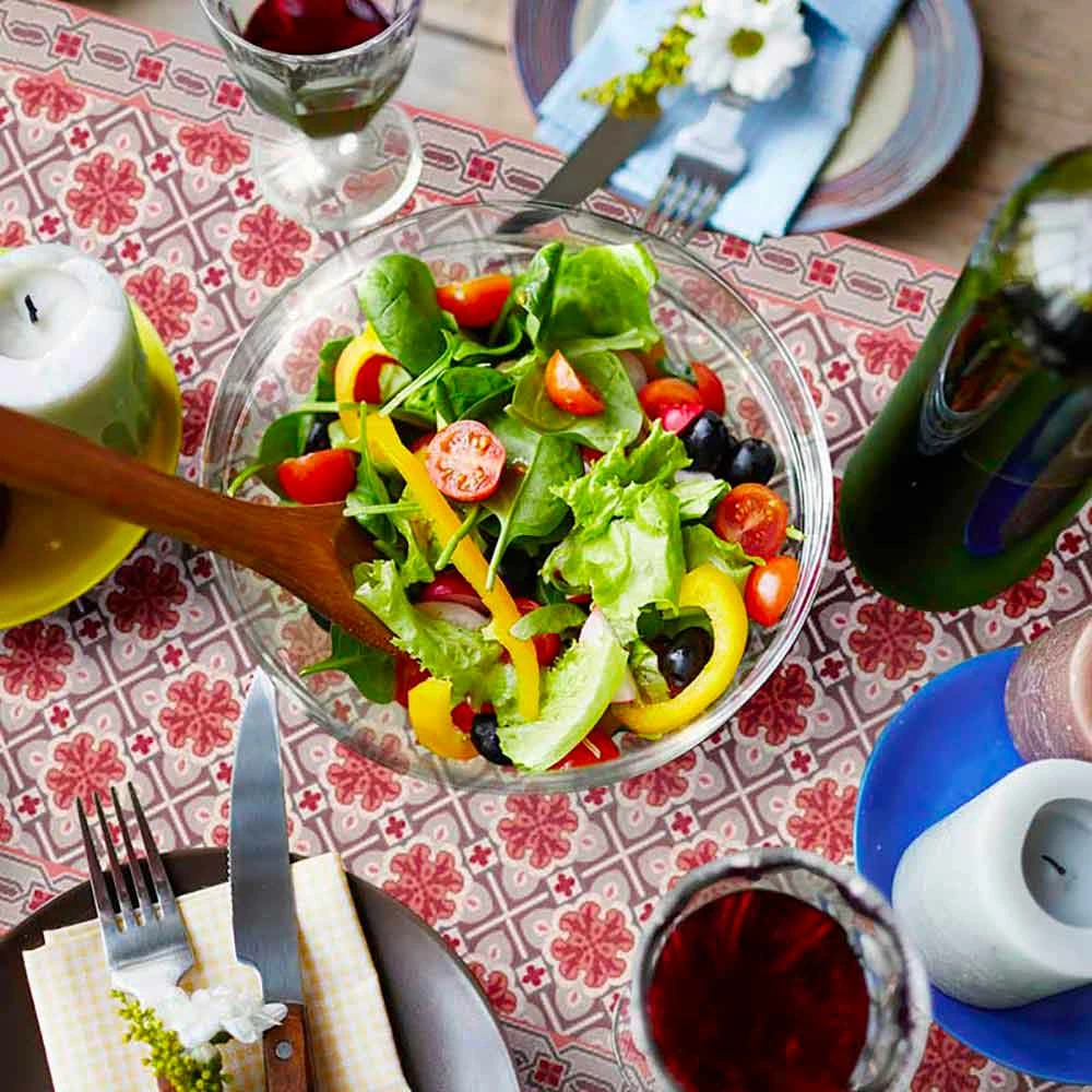 Deze Amerikaanse placemat is gemaakt van 87% PVC en de overige 13% polyester waardoor het product volledig antislip en waterdicht is, aangezien het geen vezels heeft die vlekken kunnen absorberen zoals klassieke stoffen placemats. Wat het product kenmerkt, is zeker de hoogwaardige print in felle kleuren waarmee je een minimalistische en simpele tafel kunt omtoveren tot een vol kleur en persoonlijkheid. Dankzij de materialen waarvan het is gemaakt, is het zacht en flexibel, ideaal om te worden gebruikt tijdens lunches en diners in gezelschap, zelfs buitenshuis (waarbij direct contact met de zon wordt vermeden), wat de perfecte combinatie vormt tussen schoonheid en bruikbaarheid.