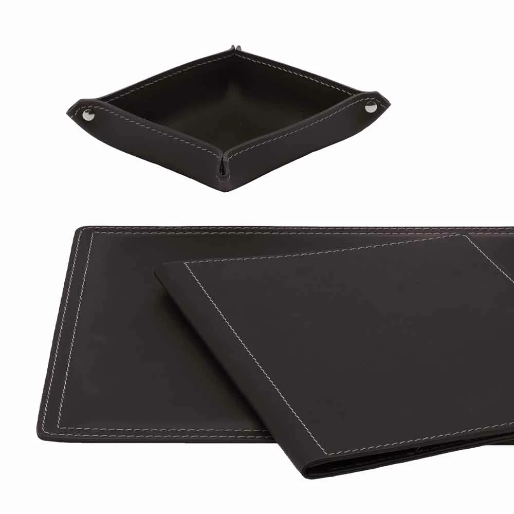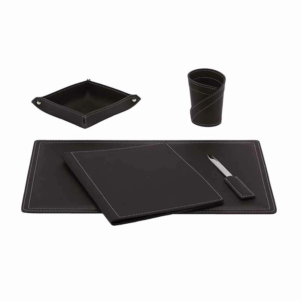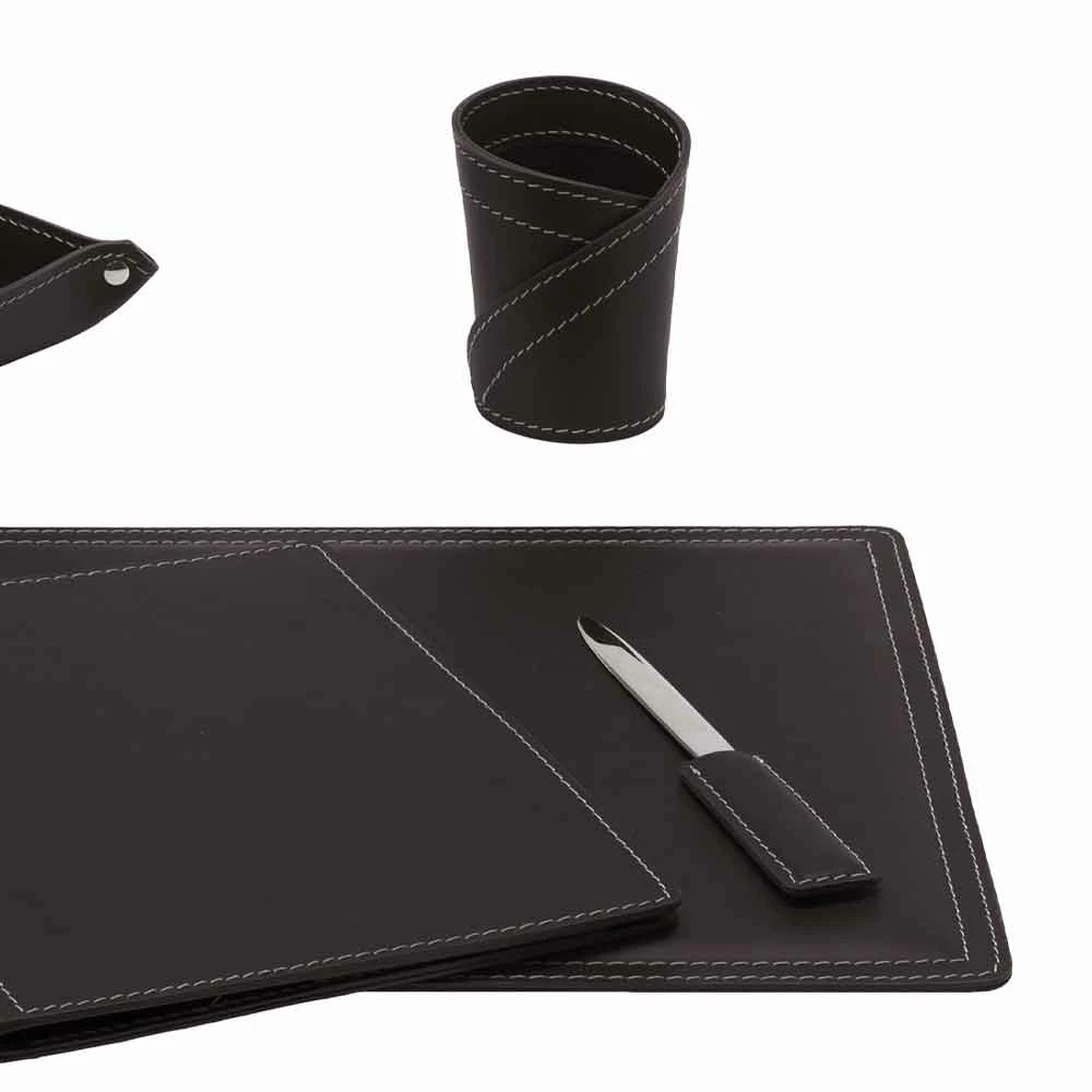 Bureau-accessoires in gebonden leer, bestaande uit 5 stuks Made in Italy Ascanio