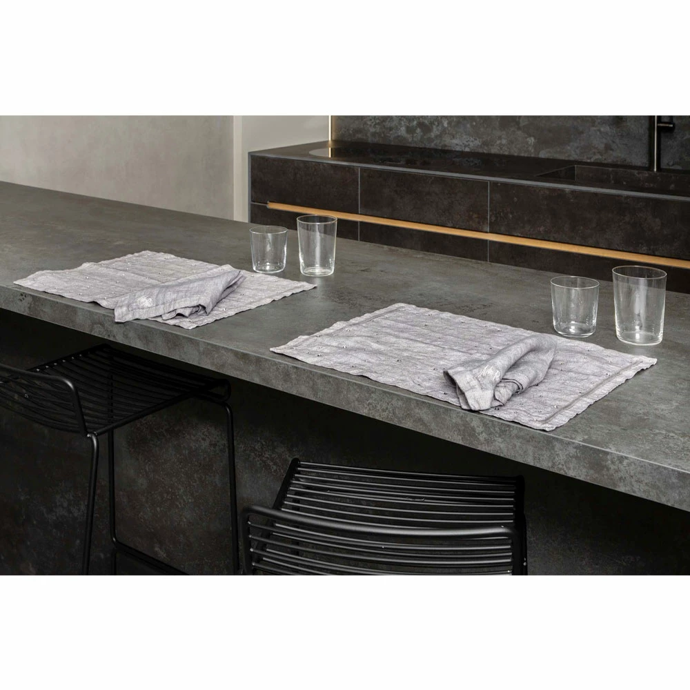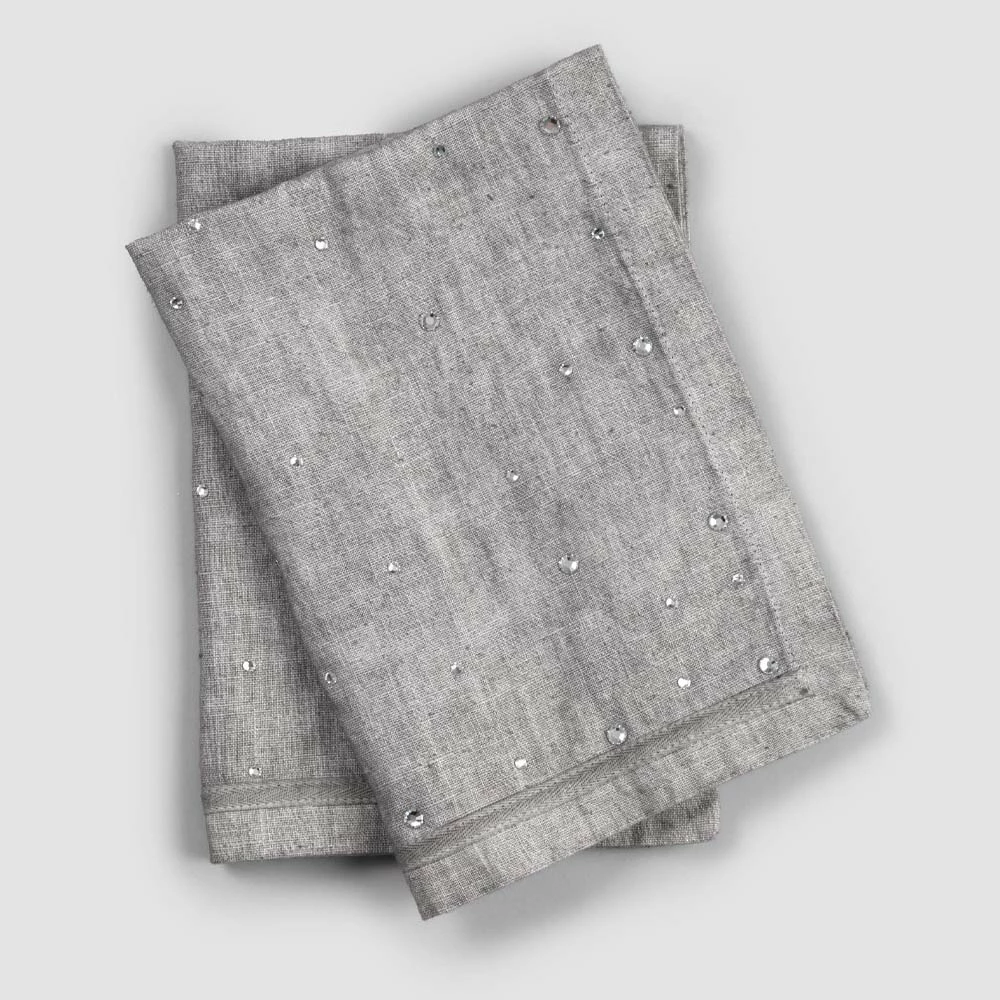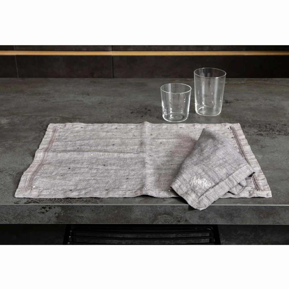 Amerikaanse antracietgrijze linnen placemat met kristallen, 2 luxe stuks gemaakt in Italië.