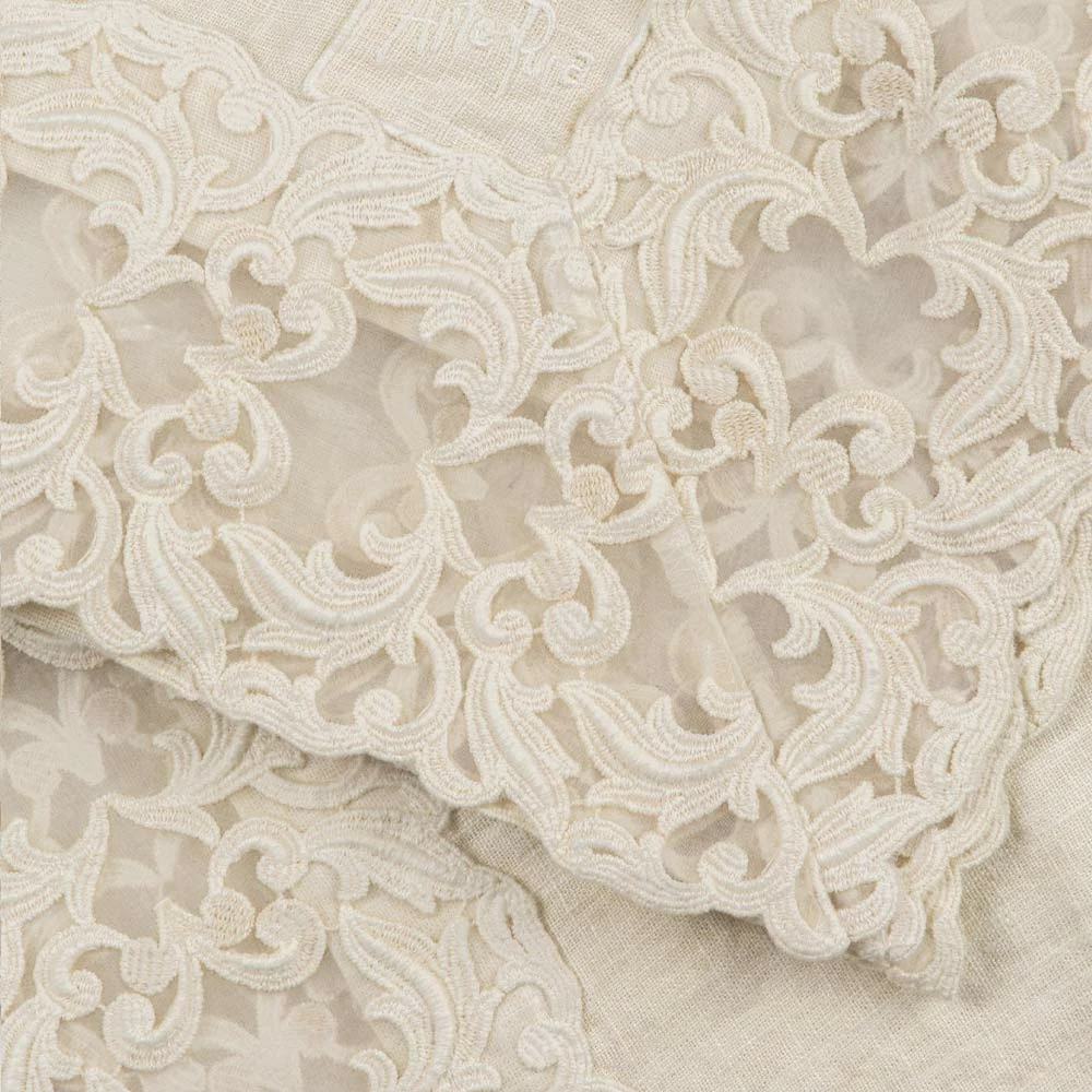 Vierkant linnen tafelkleed met Farnese kant, fijn gemaakt in Italië.