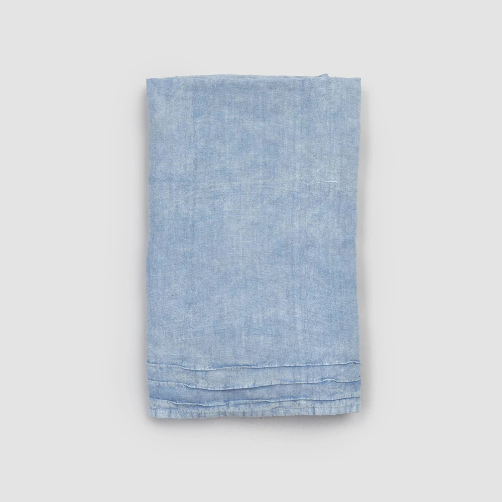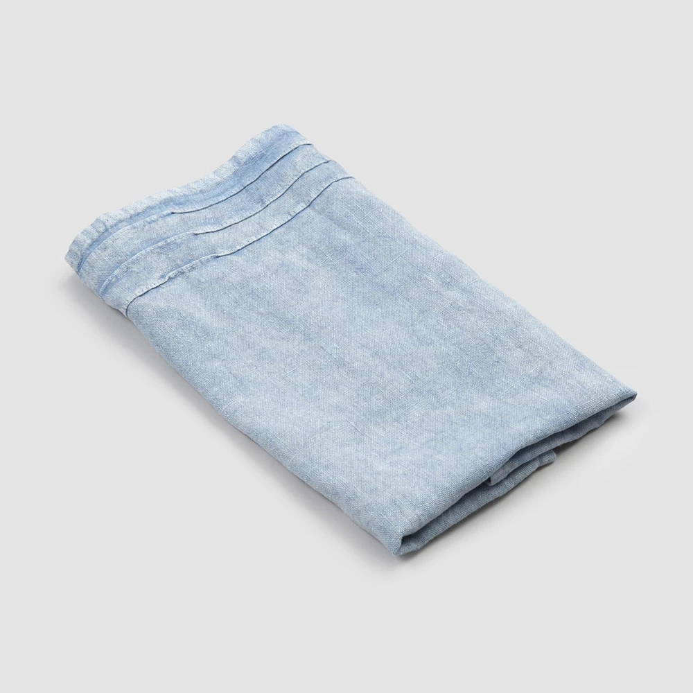 De waarde van traditie wordt gecombineerd met de moderne levensstijl in deze gezichtsbadhanddoek van zwaar blauw linnen en een rand met een geplooid patroon aan de korte zijden.
