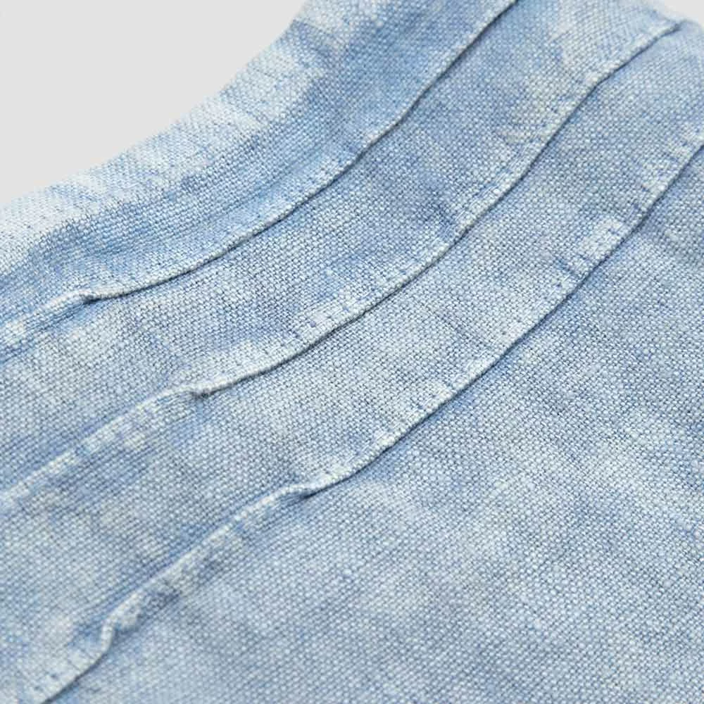 We raden aan om op lage temperaturen te strijken en zonder directe blootstelling aan zonlicht om de integriteit van de kleur en natuurlijke vezels te behouden.