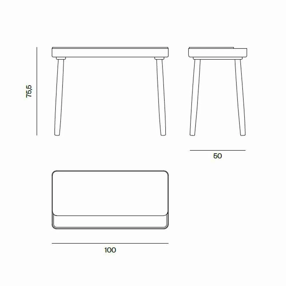 Massief houten bureau met schuifblad en opbergvak Made in Italy.