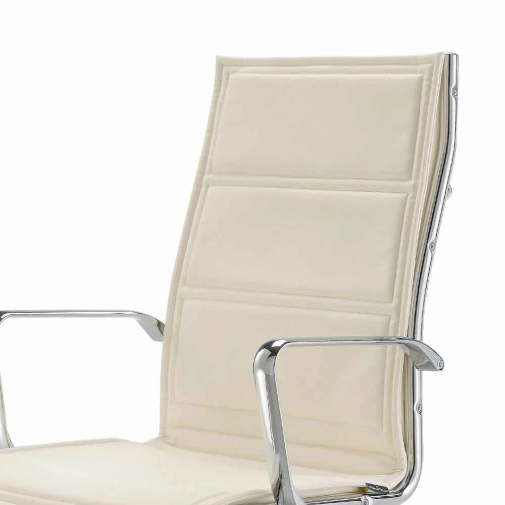 Zijn specialiteit is de crèmekleurige kunstlederen bekleding en de hoge gewatteerde rug die het nog comfortabeler maakt.