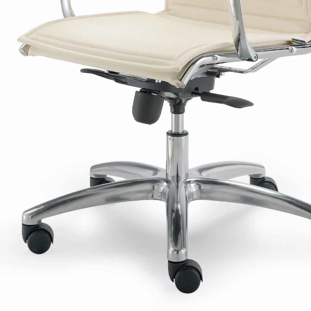 Compleet met verchroomde aluminium armleuningen en een 5-sterren onderstel van gepolijst aluminium, compleet met geremde wielen met Ø 50 mm.