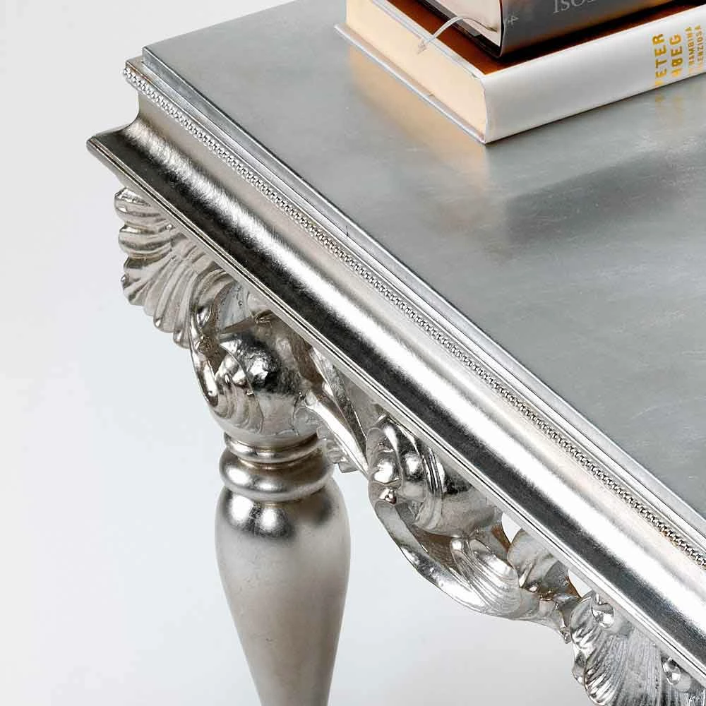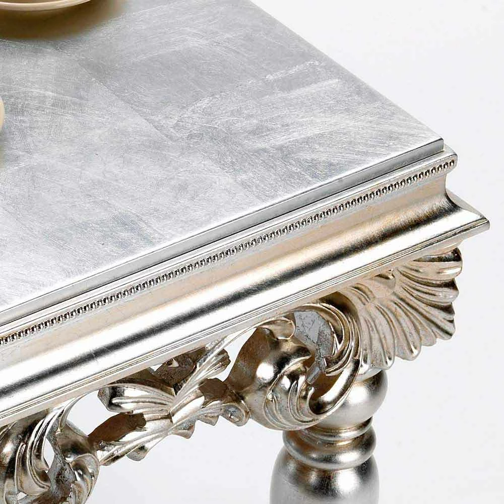 Zorn De tabel wordt gekenmerkt door een afwerking met hoogwaardige materialen en het gebruik van de ervaring van deskundigen Italiaanse ambachtslieden uitgevoerd. De structuur is gemaakt van hout met zilveren blad afwerking. Made in Italy.
