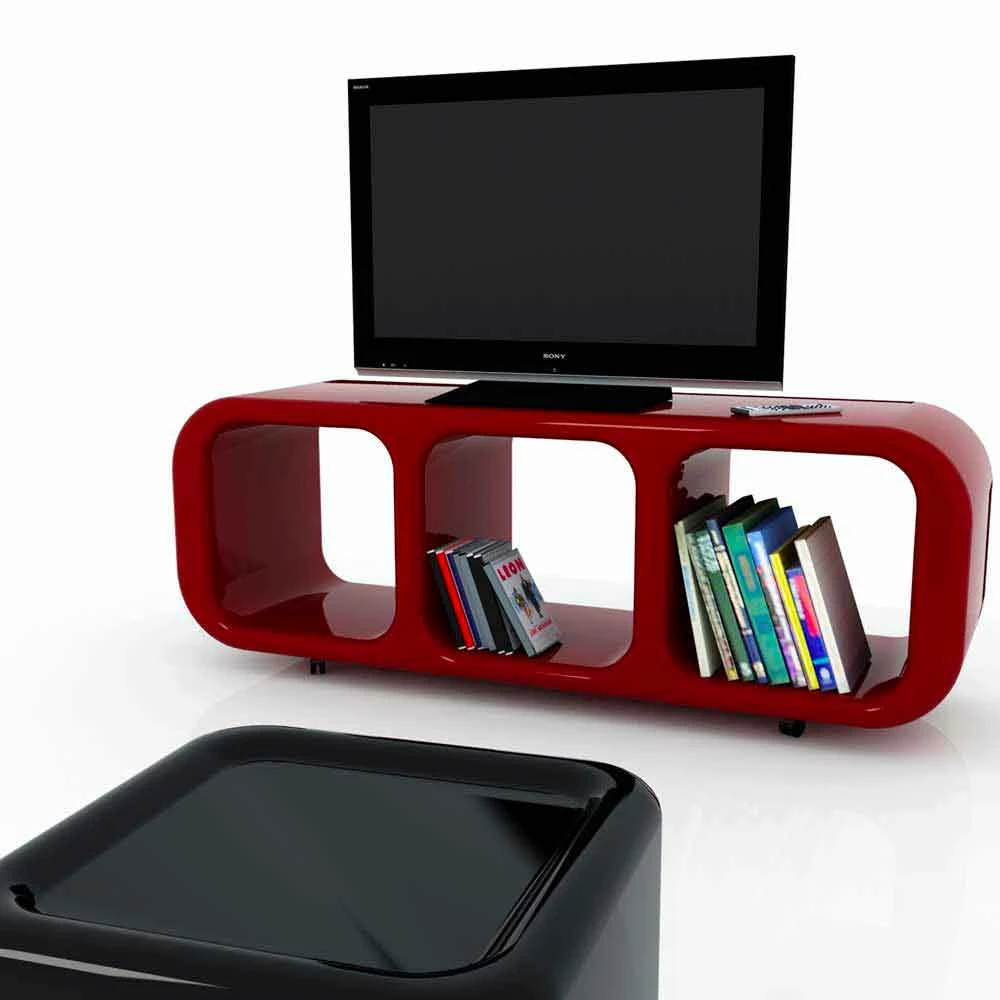 Eracle is uitgerust met een multifunctioneel accessoire dat, indien nodig, een salontafel, poef, kruk, kleine container of mand wordt en in rust onderdak vindt in een van de drie vierkante compartimenten van het meubel.