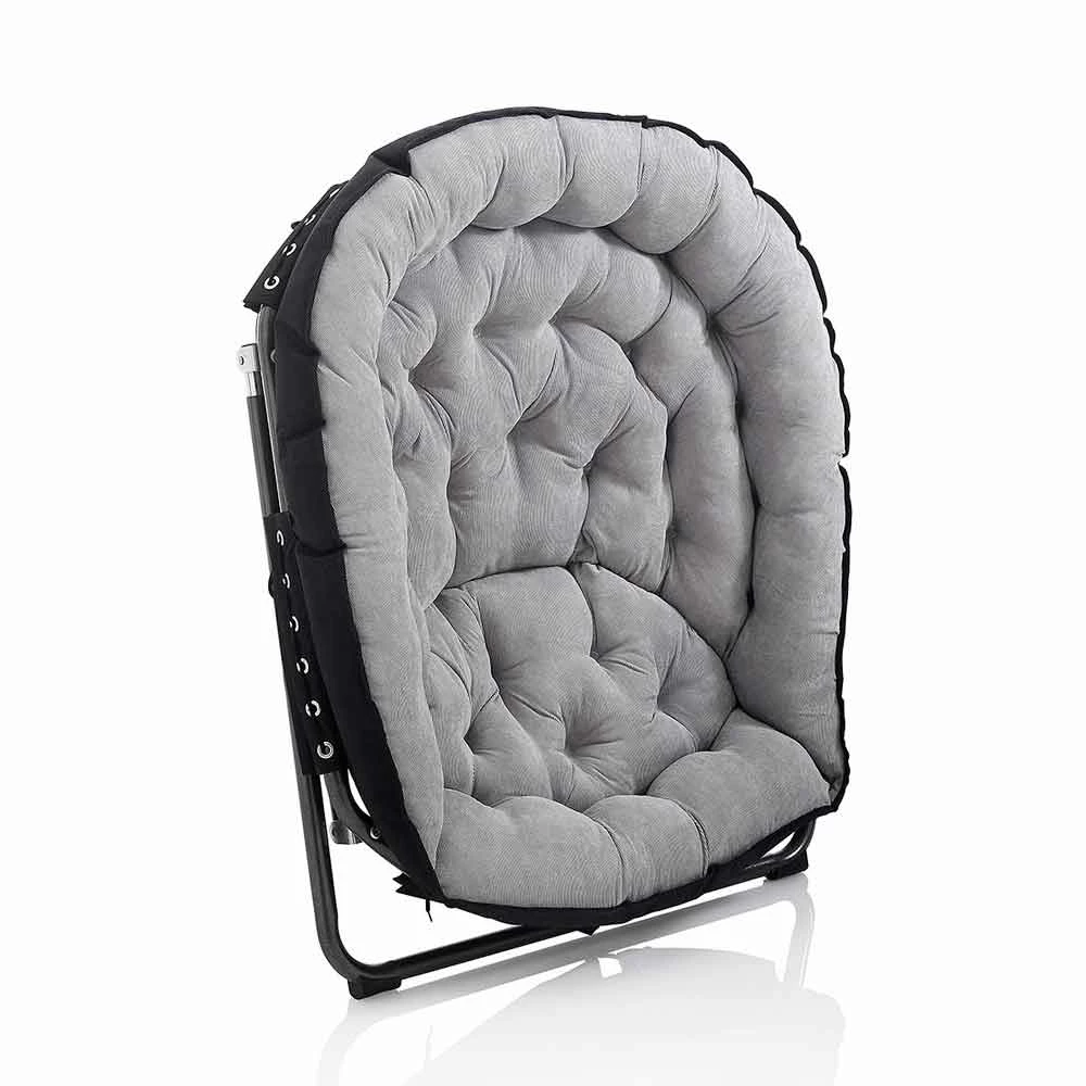 Deze fauteuil kenmerkt zich door een uniek en extravagant ontwerp dat de aandacht trekt dankzij de prachtige combinatie van materialen en afwerkingen die zijn gebruikt voor de realisatie ervan. De structuur is samengesteld uit een zwart metalen onderstel en een gewatteerde zitting bekleed met lichtgrijs fluweel .