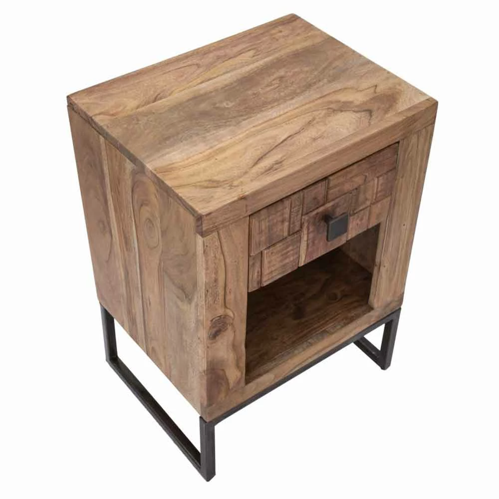 Nachtkastje met één lade van ijzer en design acaciahout.