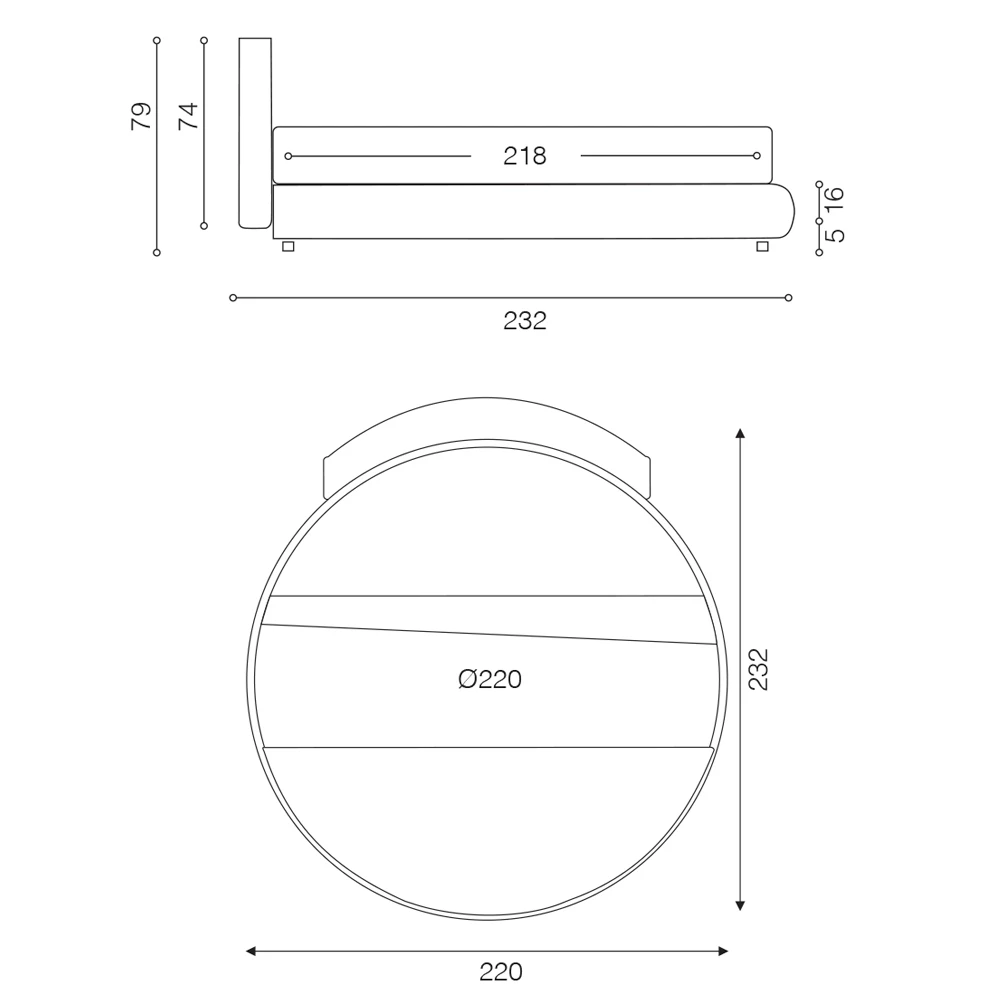 Rond tweepersoonsbed gemaakt in Italië, gewatteerd en bedekt met eco-leer.