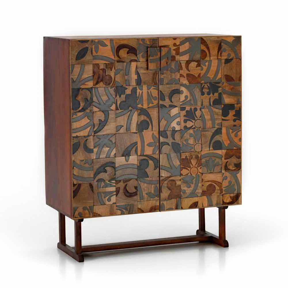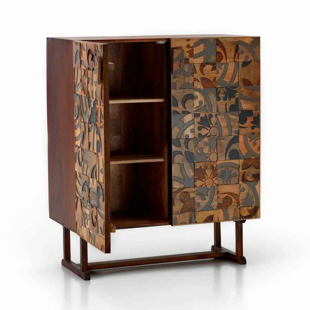 Opbergmeubel met twee deuren met een modern, chic en etnisch design, perfect om in elke omgeving te integreren, van huis tot kantoor.