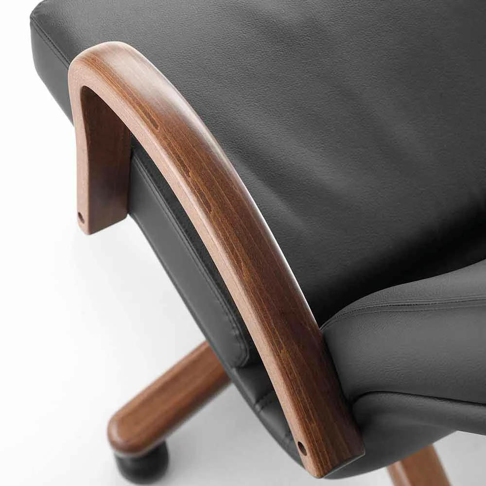 De Savino bureaustoel is ideaal omdat hij maximaal comfort tijdens werkuren garandeert; het wordt geleverd met een draaibare stoel met gaslift, armen en basis in beukenhout met walnootkleuren met wielen van polycarbonaat, stoel verkrijgbaar in twee verschillende afwerkingen: