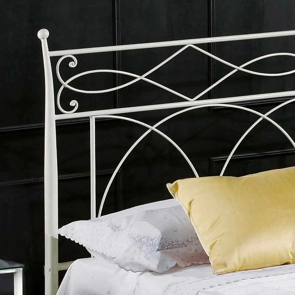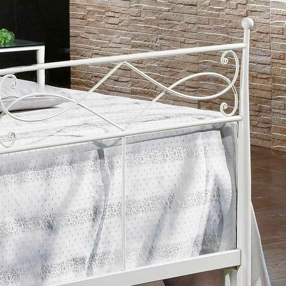 Het bed wordt met de hand gesmeed en heeft een smeedijzer met benen in conische buis. Alle in de delicate witte lak.