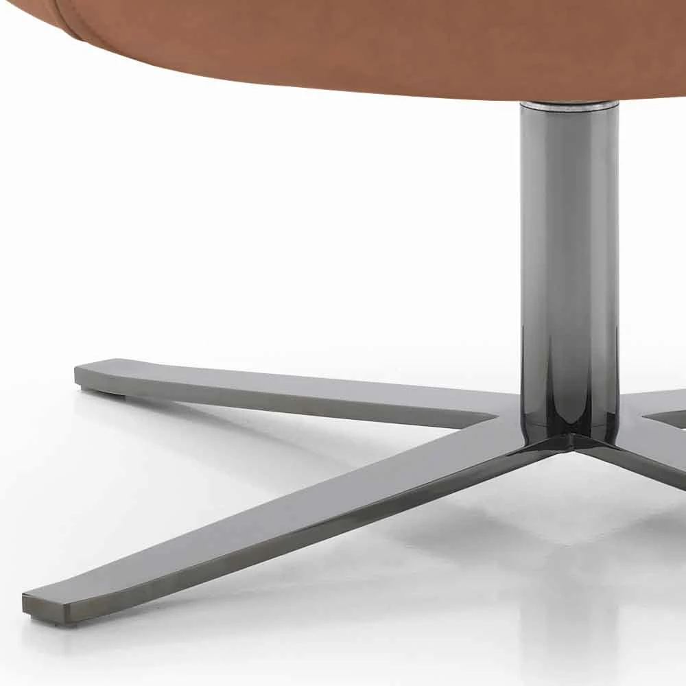 Woonkamerfauteuil met interne structuur in staal gegoten in koudgeschuimd polyurethaan en bedekt met leer en stof en draaivoet in metaal. Gemaakt door een 100% Made in Italy-productie , werd deze fauteuil geboren uit de wens om een aanvulling te bieden die in staat is om optimaal comfort te garanderen en tegelijkertijd het omringende meubilair te verrijken met persoonlijkheid en elegantie . Een exclusief ontwerp dat wordt gekenmerkt door omhullende en comfortabele lijnen en vormen die leven geven aan een stoel die even functioneel als verfijnd is en met een verfijnde esthetiek . De draaivoet verrijkt zijn stijl nog meer, waardoor het een perfecte oplossing is voor op kantoor, terwijl de structuur, gecreëerd door het gebruik van zeer technische materialen , ervoor zorgt dat u zich “eindelijk thuis” voelt wanneer u het nodig heeft om zo het ultieme te bereiken in ontspanning.