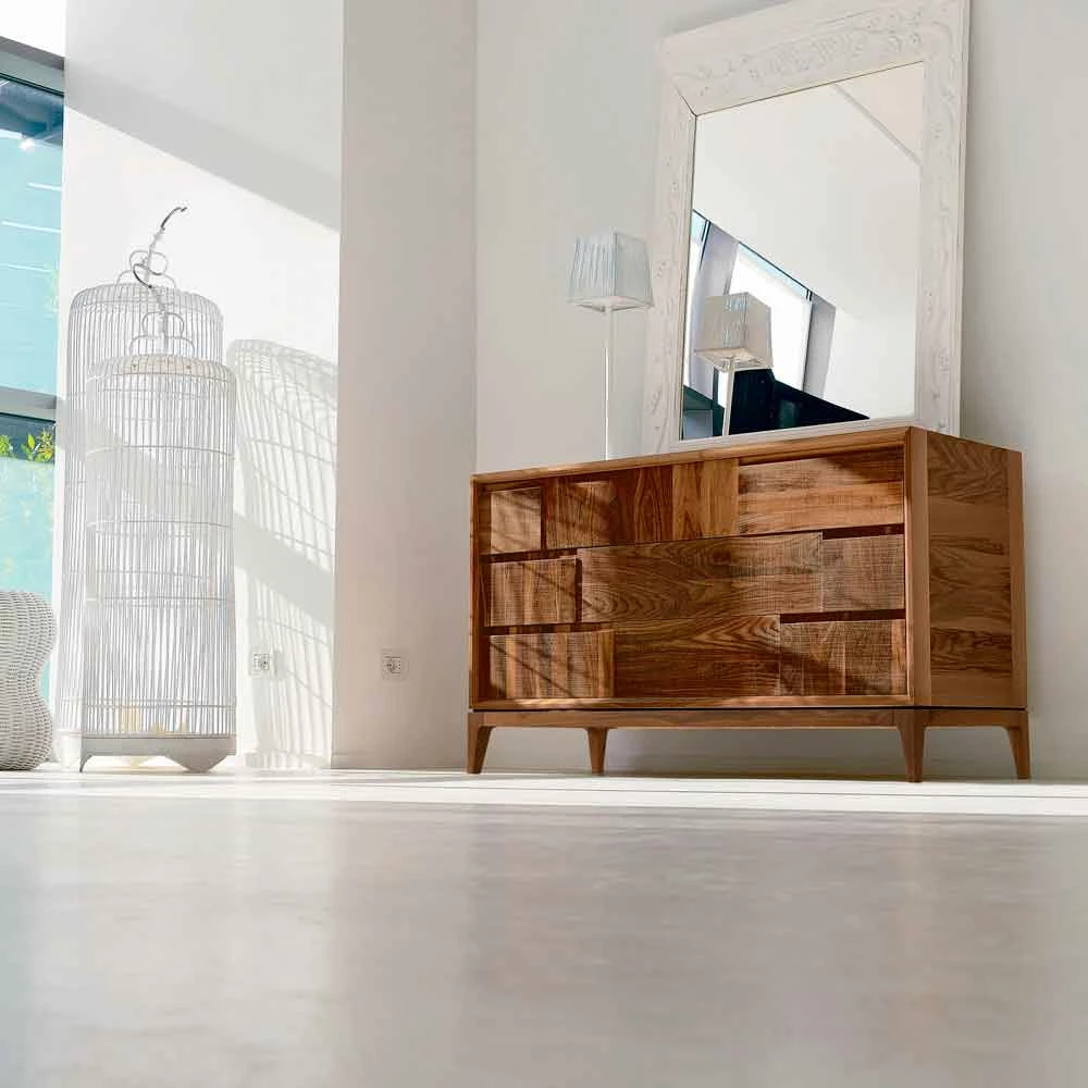innovatief en origineel ontwerp, dankzij de geavanceerde verwerking van de laden. De lijnen die het oppervlak karakteriseren met rechthoekige elementen die afwisselen beweging geeft aan de oppervlakken.