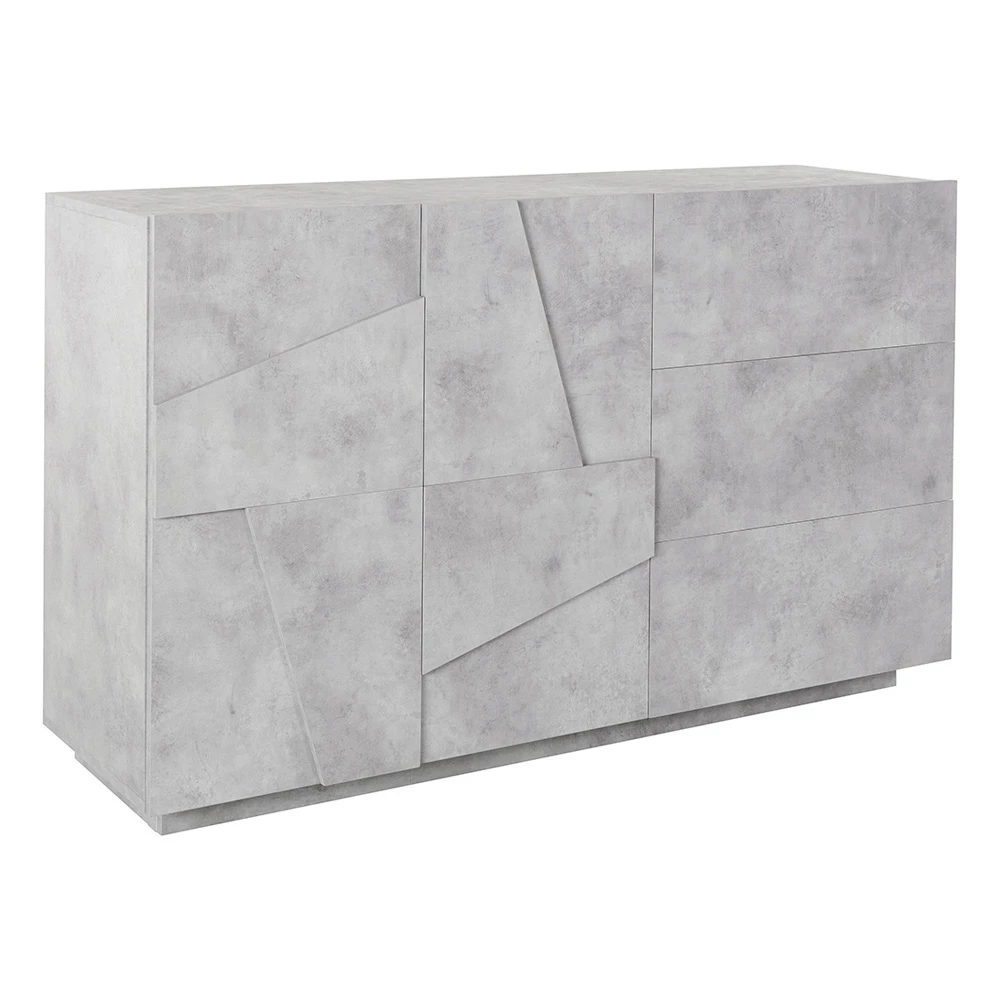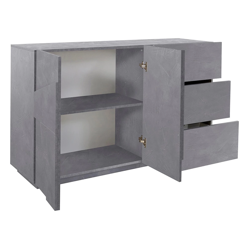 Het dressoir is samengesteld uit 2 draaideuren die speciaal zijn gemaakt door het geometrisch snijwerk in reliëf op het oppervlak, 2 opbergvakken sluitend, en 3 lades met push to open opening die een grote opbergruimte garanderen. Het is gemaakt van melamine en 100% Made in Italy . Dit product leent zich om de inrichting van elke woonkamer te voltooien dankzij de eenvoudige en elegante afwerkingen die de kamer een uniek en onvergetelijk tintje geven. Het gebruikte materiaal garandeert kwaliteit en duurzaamheid, zelfs in de loop van de tijd.
