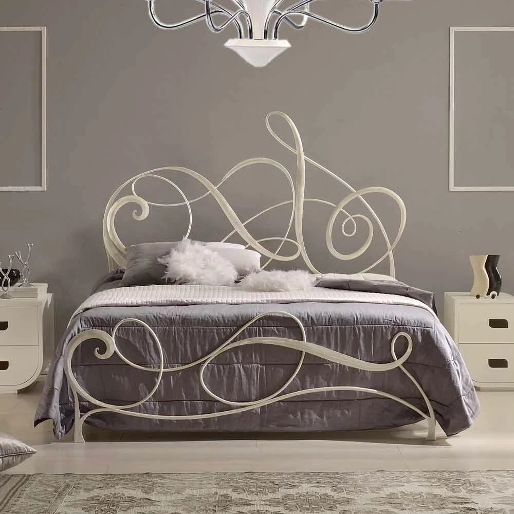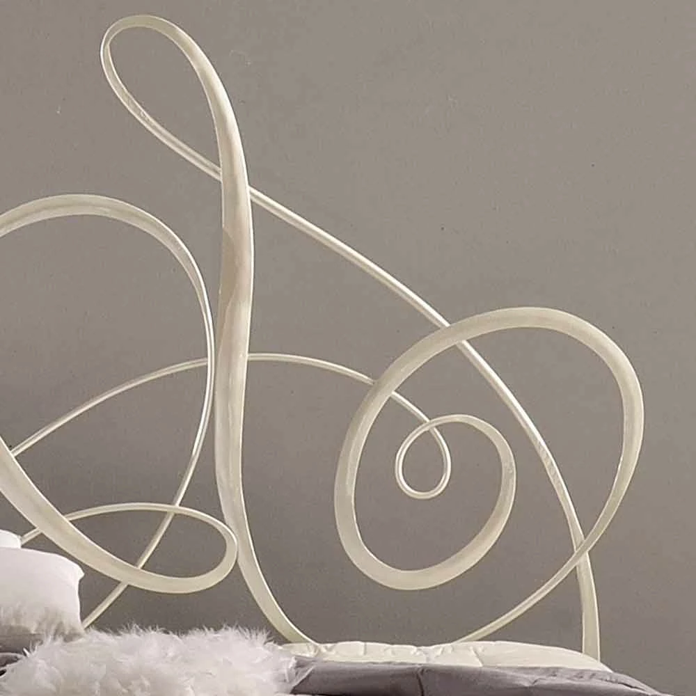 Athena is een bed geïnspireerd door de G-sleutel die heerst op de cilinderkop en vormen een reeks van bochten, dat het aangenaam en elegant.
