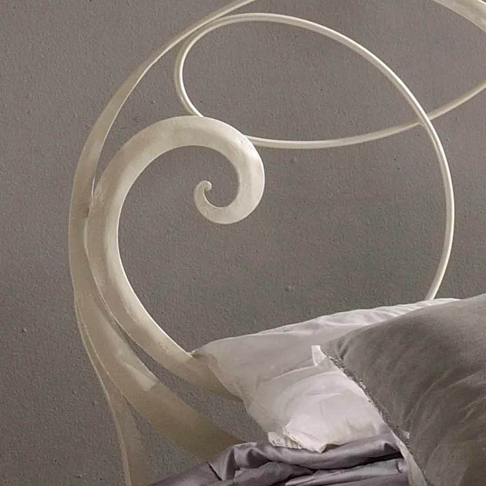 Dit bed is handgemaakt smeedijzeren in crème finish.