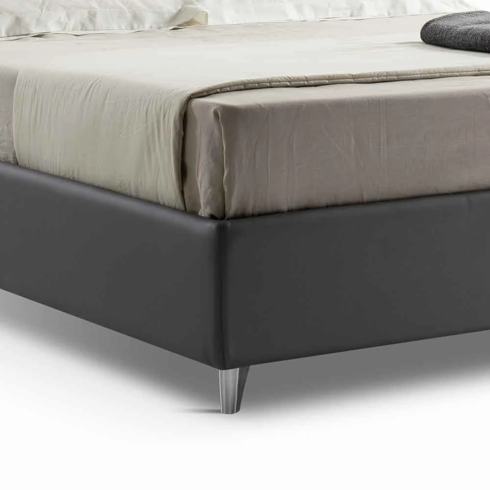 Gestoffeerd luxe tweepersoonsbed met modern design bak in eco-leer, made in Italy.