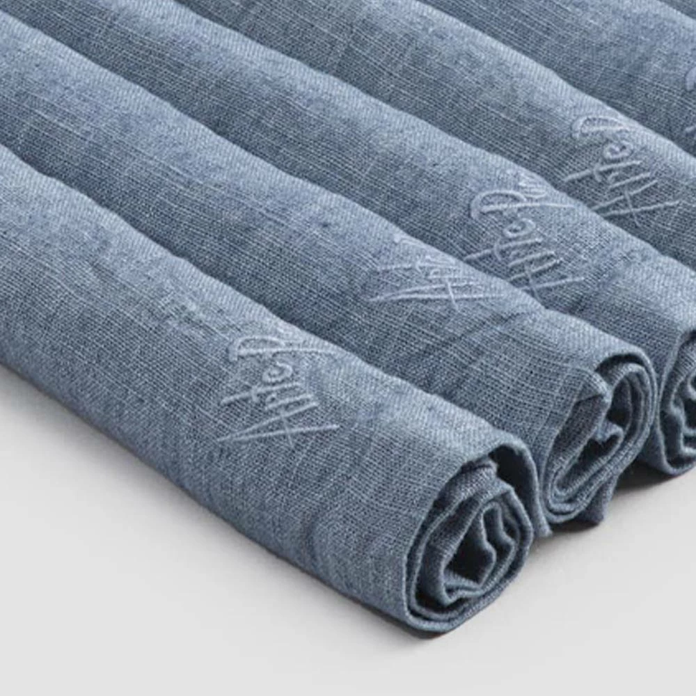 Zwaar gekleurd linnen servet met omgeslagen rand, 6 luxe stuks made in Italy.
