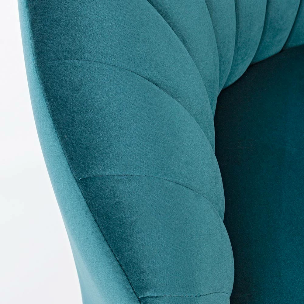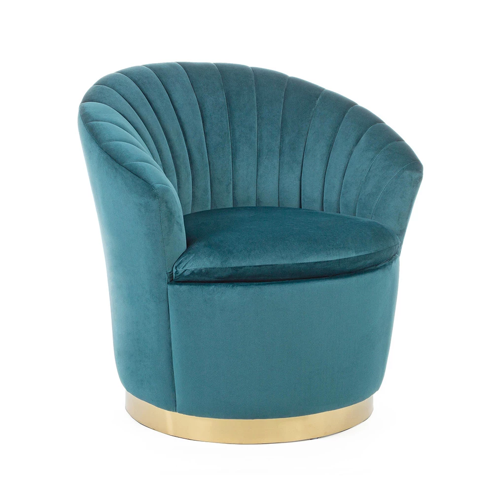 Elegante klassieke fauteuil in staal, grenenhout en polyester met fluweeleffect.