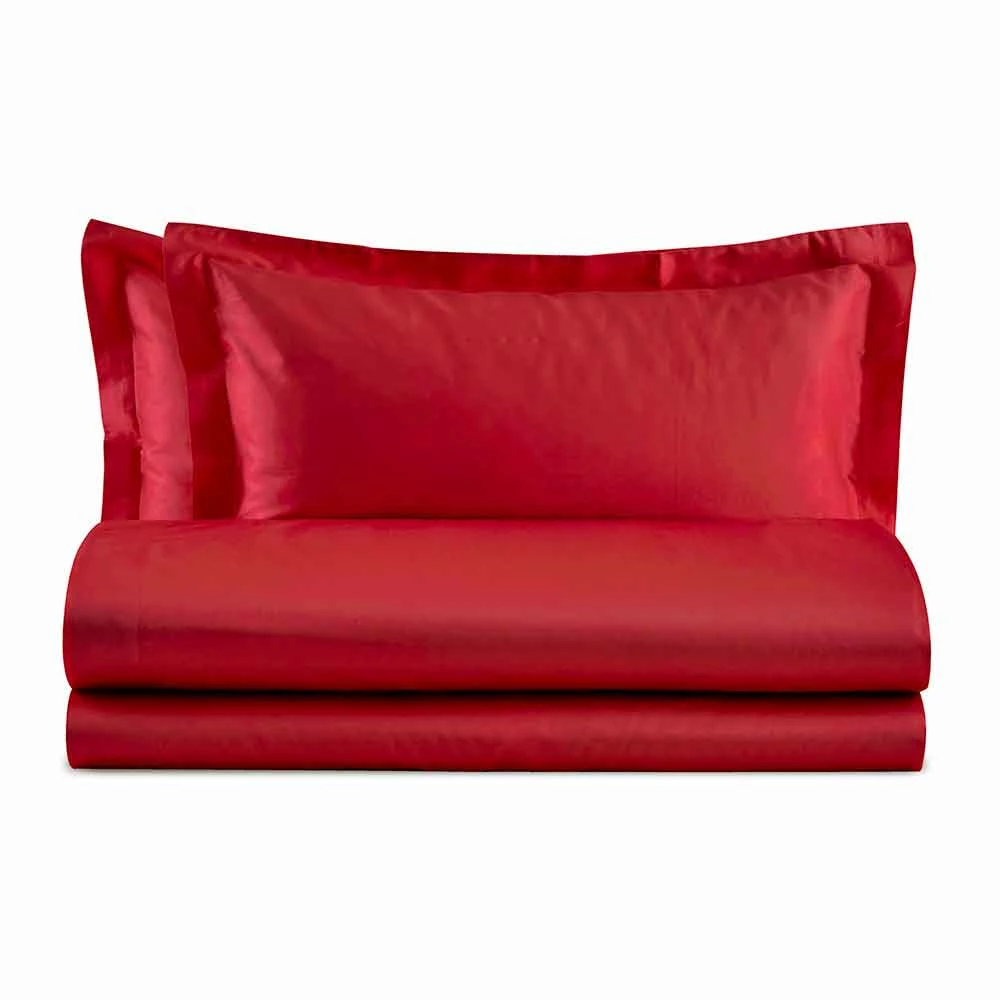 Lakenset voor tweepersoonsbed in katoensatijn van verschillende effen kleuren, elegant ontwerp gemaakt in Italië.