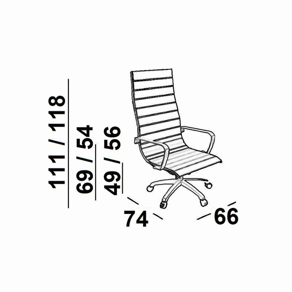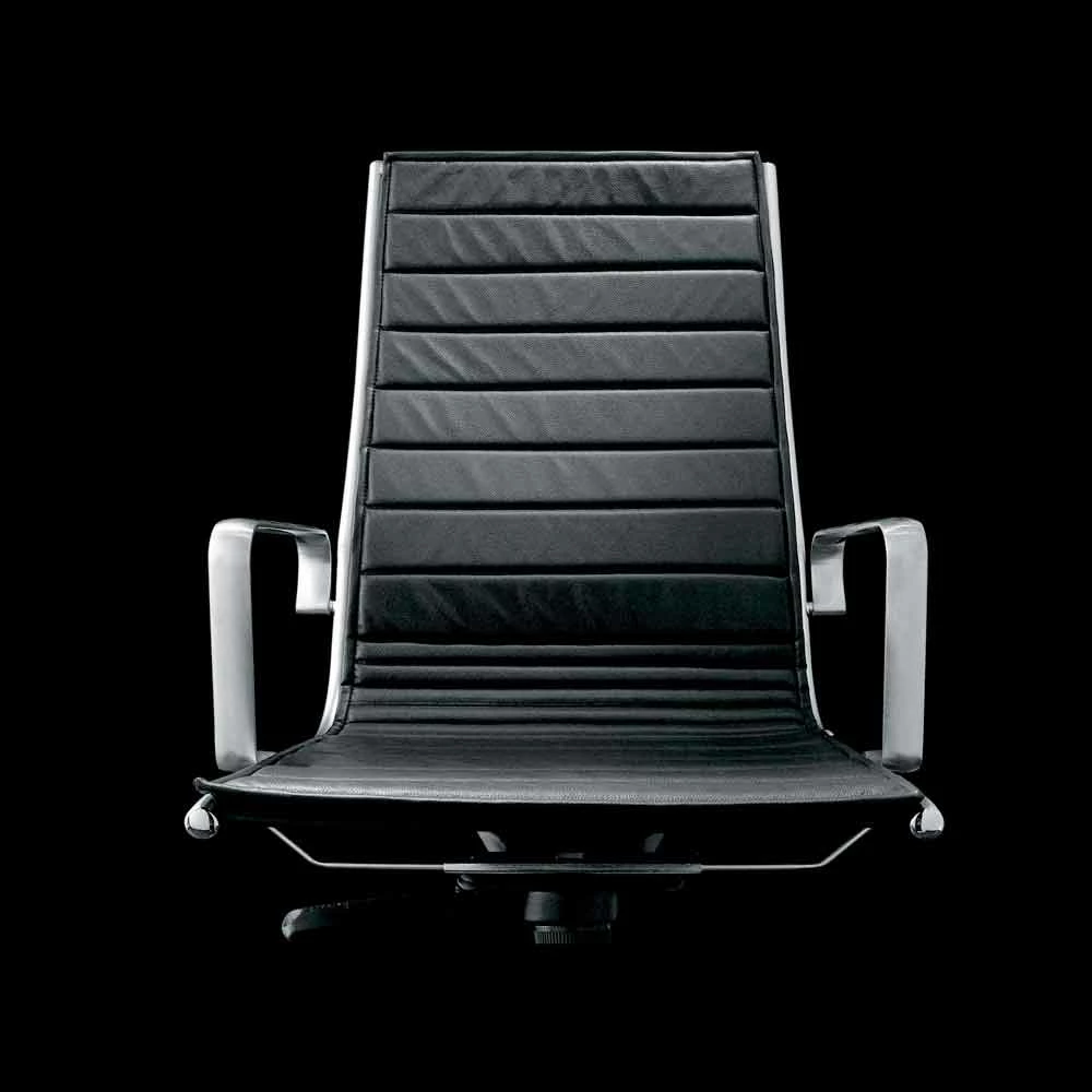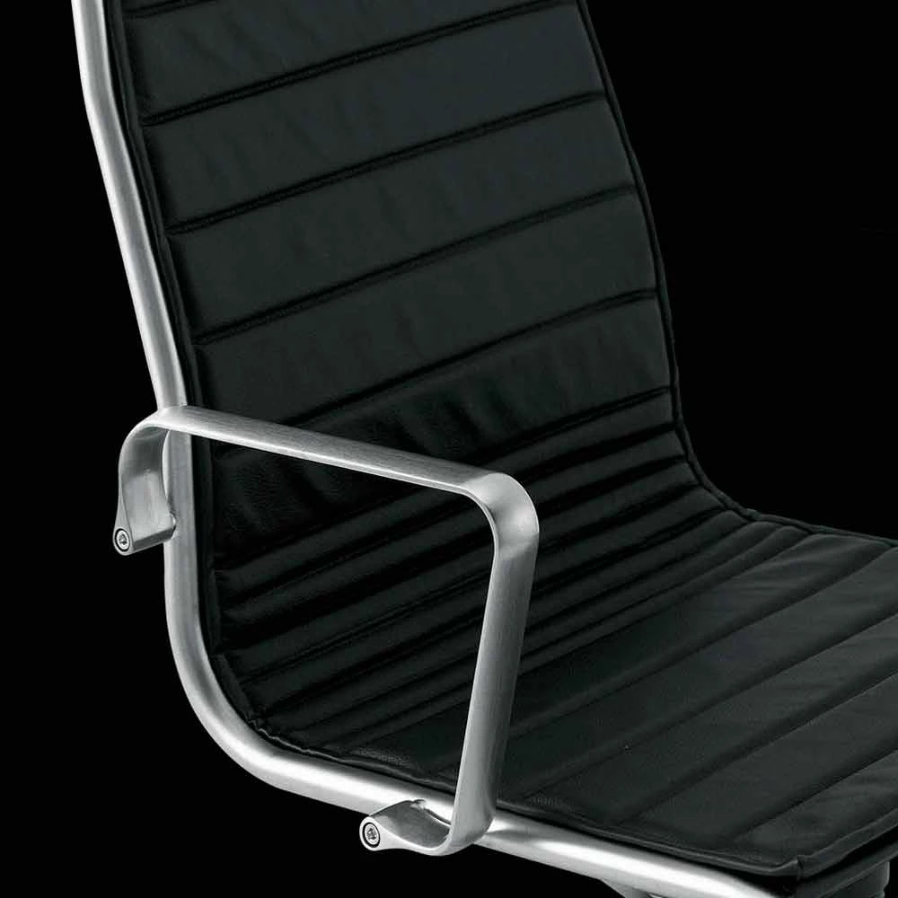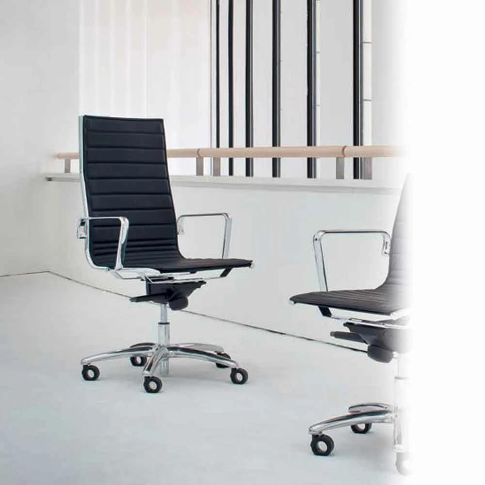 Directionele, hoge rugleuning, met verchroomde aluminium armleuningen, oscillerende multiblok, gepolijst aluminium.