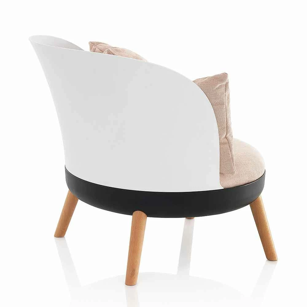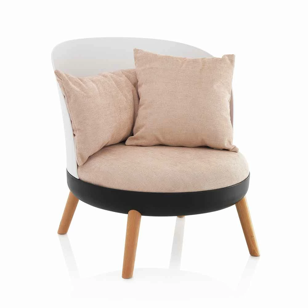 Deze fauteuil kenmerkt zich door een uniek en extravagant ontwerp dat de aandacht trekt dankzij de prachtige combinatie van materialen en afwerkingen die zijn gebruikt voor de realisatie ervan. De structuur bestaat uit 4 eikenkleurige metalen poten, een antracietgrijze pvc- basis en gewatteerde zitting en rugleuning bekleed met poederroze en grijs fluweeleffect microfiber .