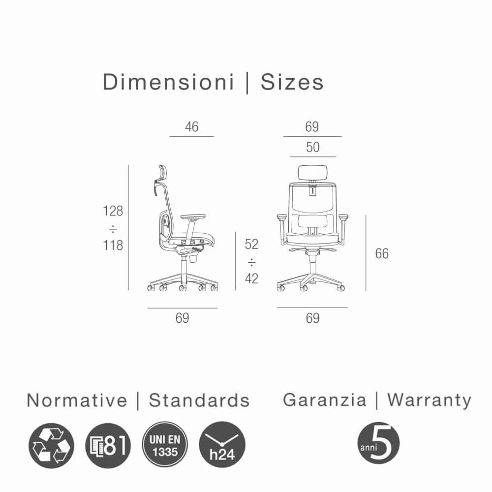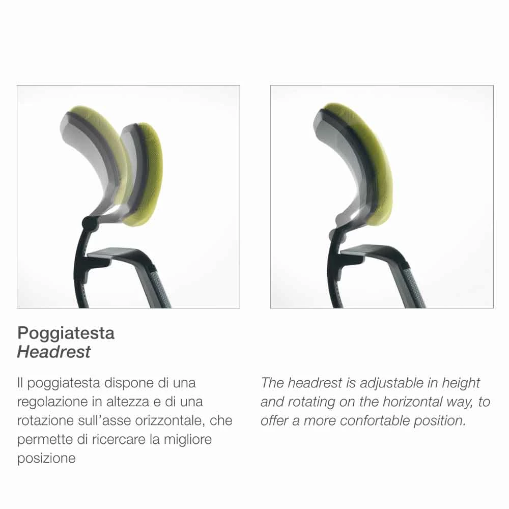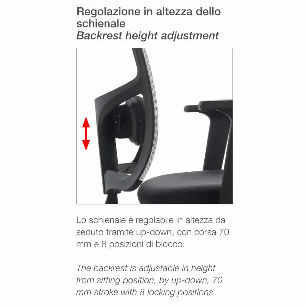 De rugleuning is in hoogte verstelbaar zitten door een omhoog-omlaag mechanisme met een slag van 70 mm en 8 blocking positions.