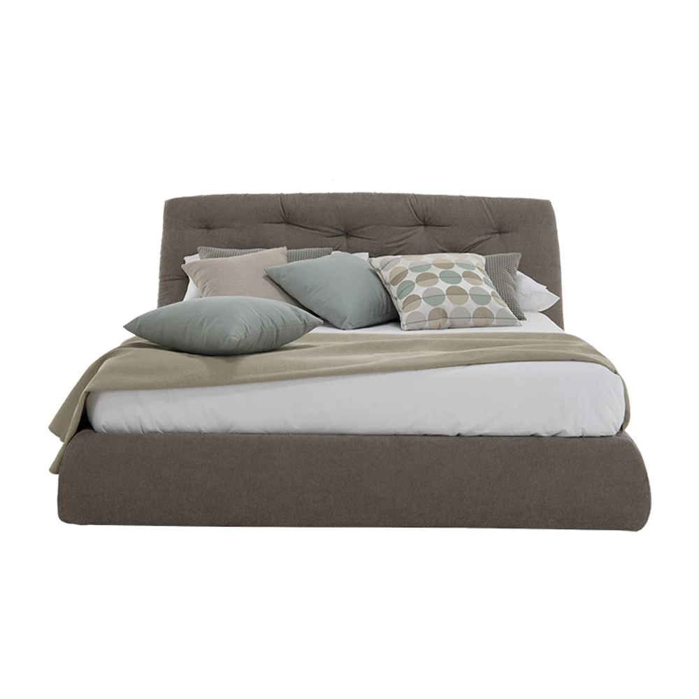 Luxe tweepersoonsbed gestoffeerd in stof of eco-leer, handgemaakt in Italië met opbergdoos.
