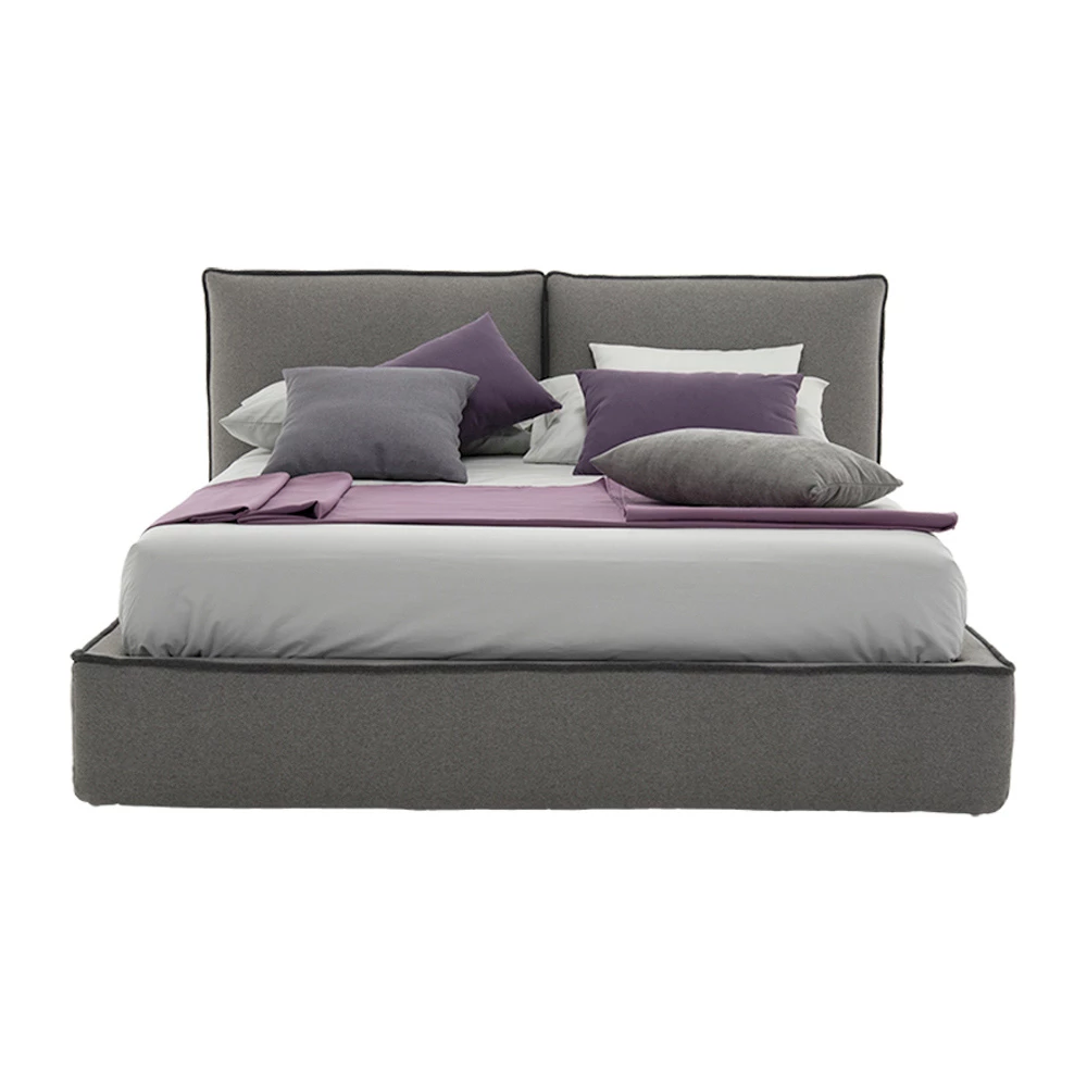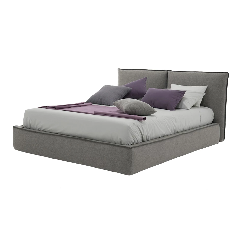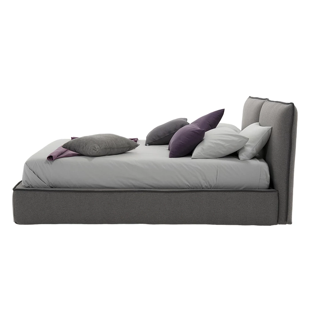 Hoogwaardig tweepersoonsbed gestoffeerd in stof of eco-leer, handgemaakt in Italië met opbergdoos.