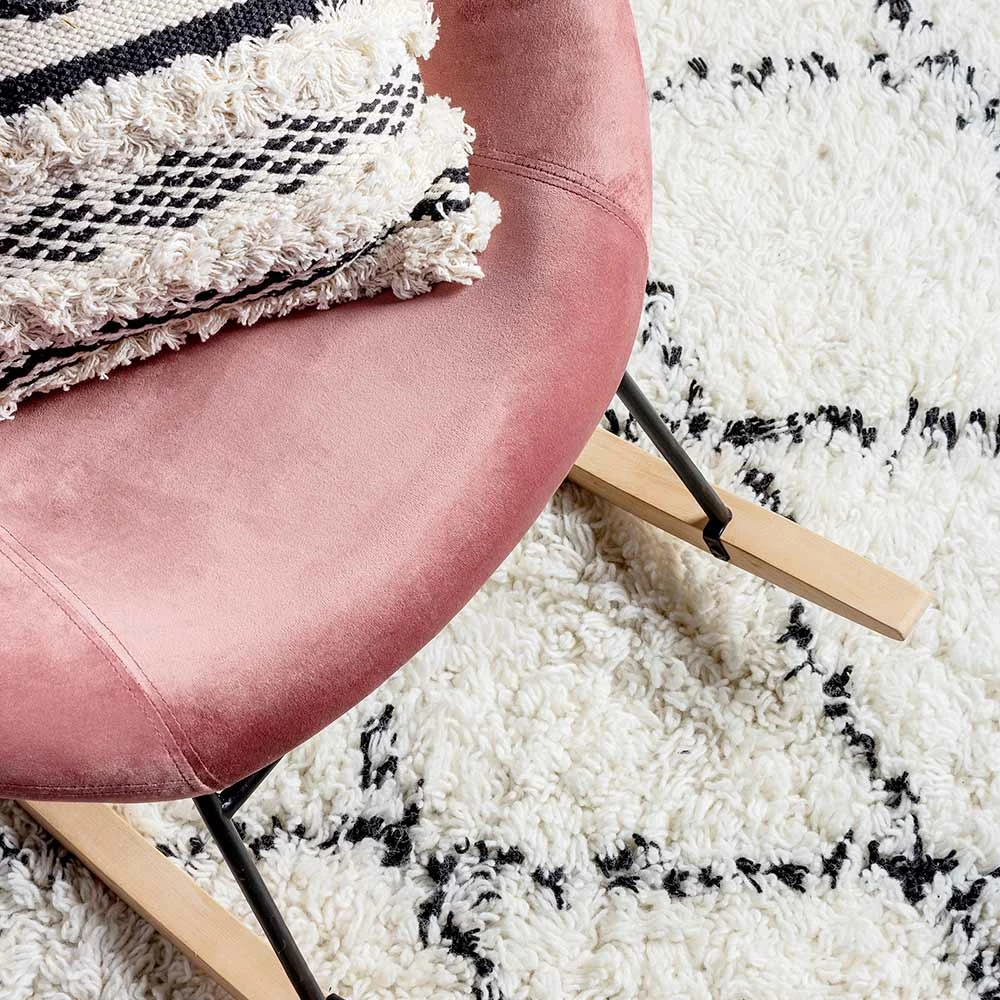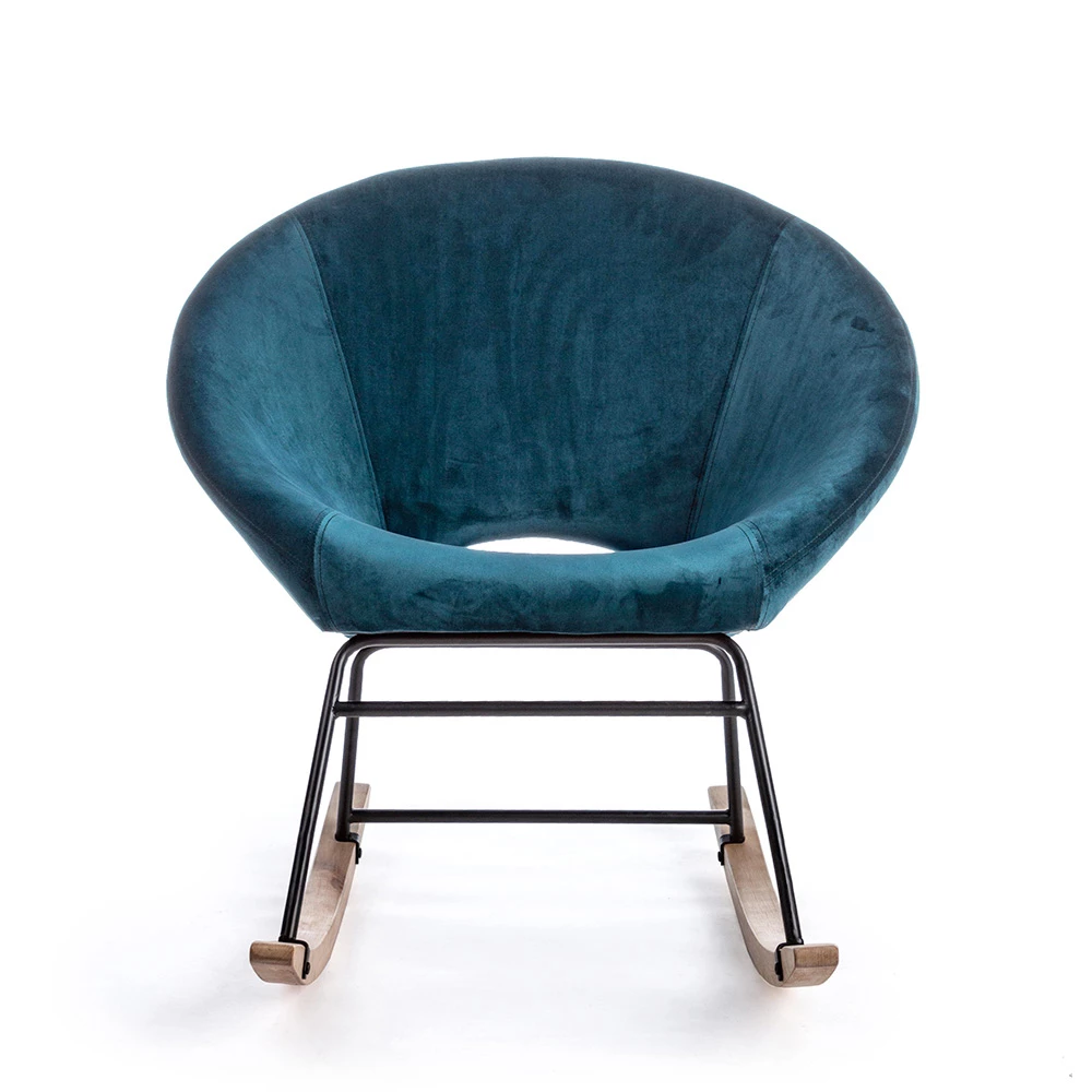 Schommelfauteuil met structuur in staal en berkenhout, gestoffeerde zitting met fluweeleffect 3 afwerkingen.