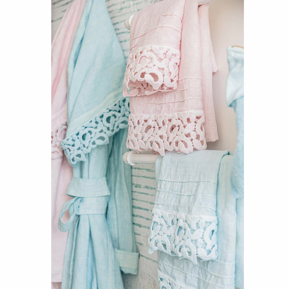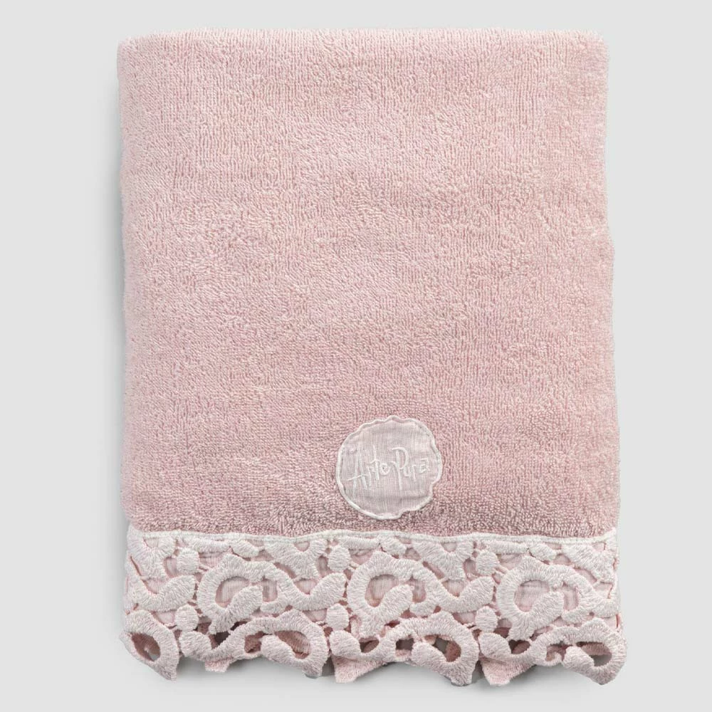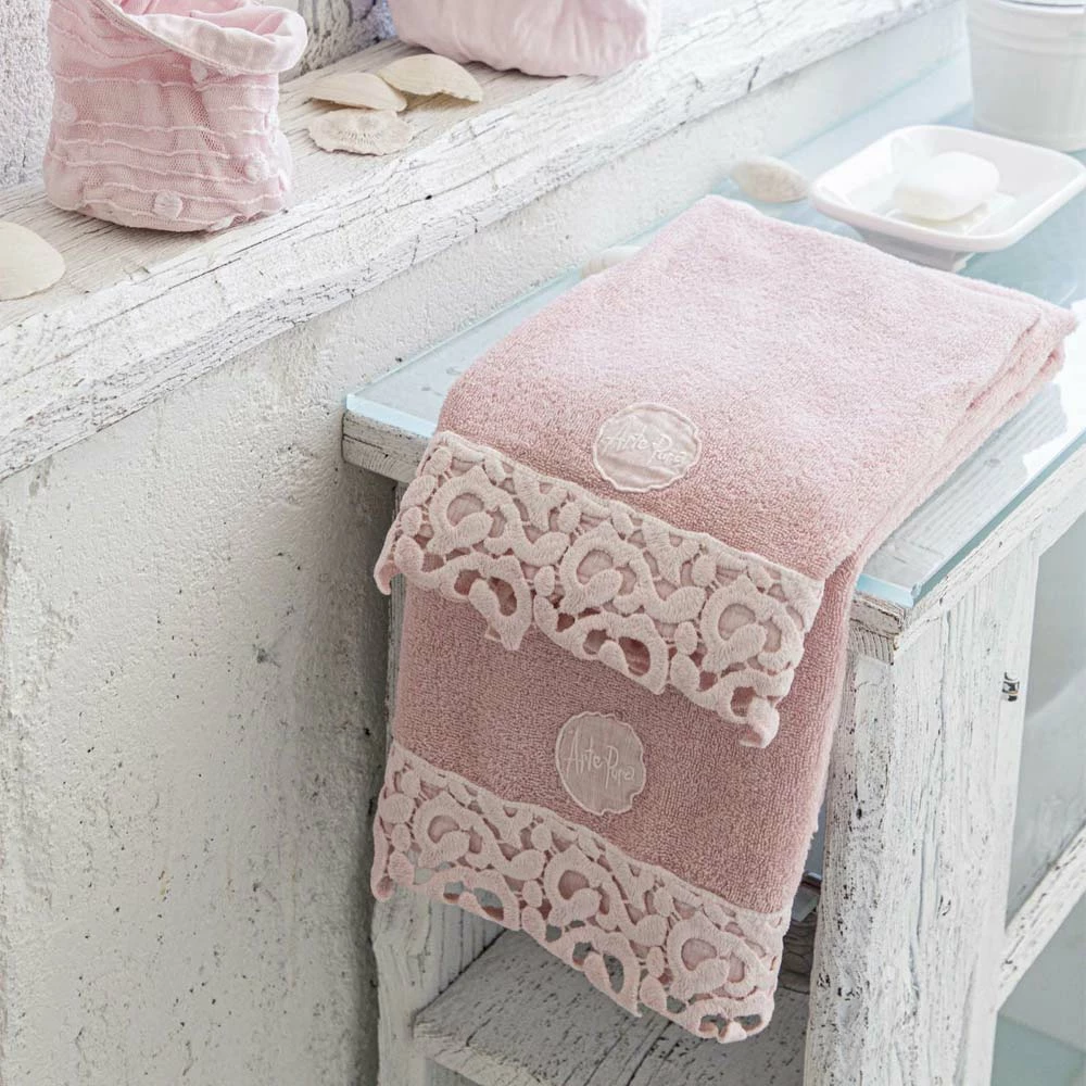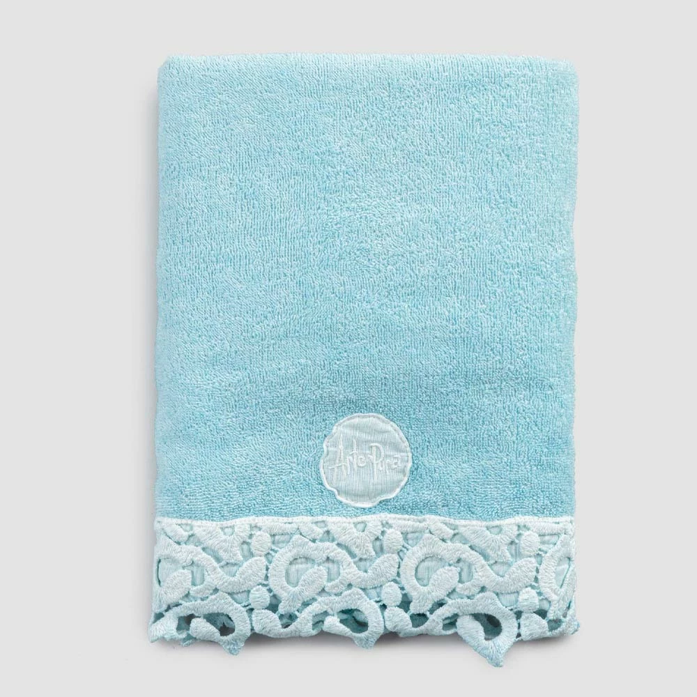 Katoenen badstof handdoek met kant, 2 luxe kleuren gemaakt in Italië.