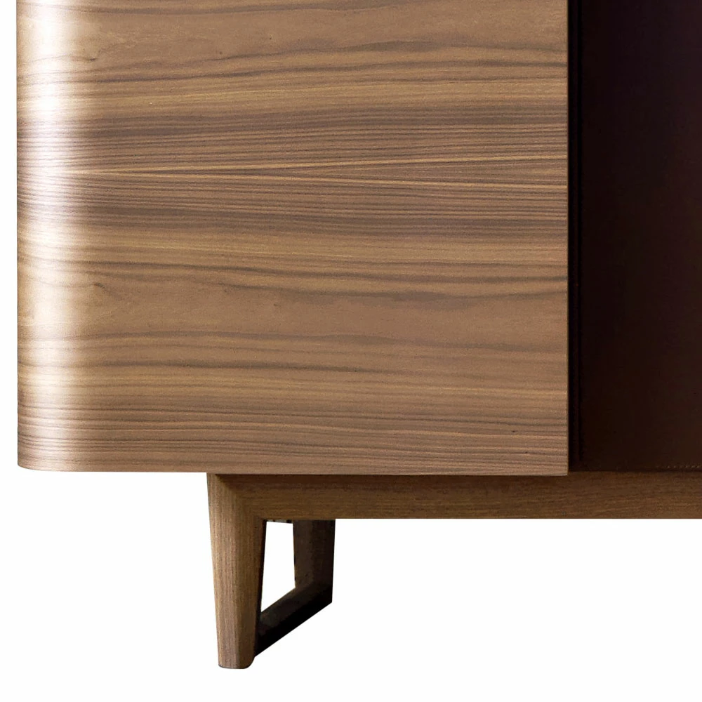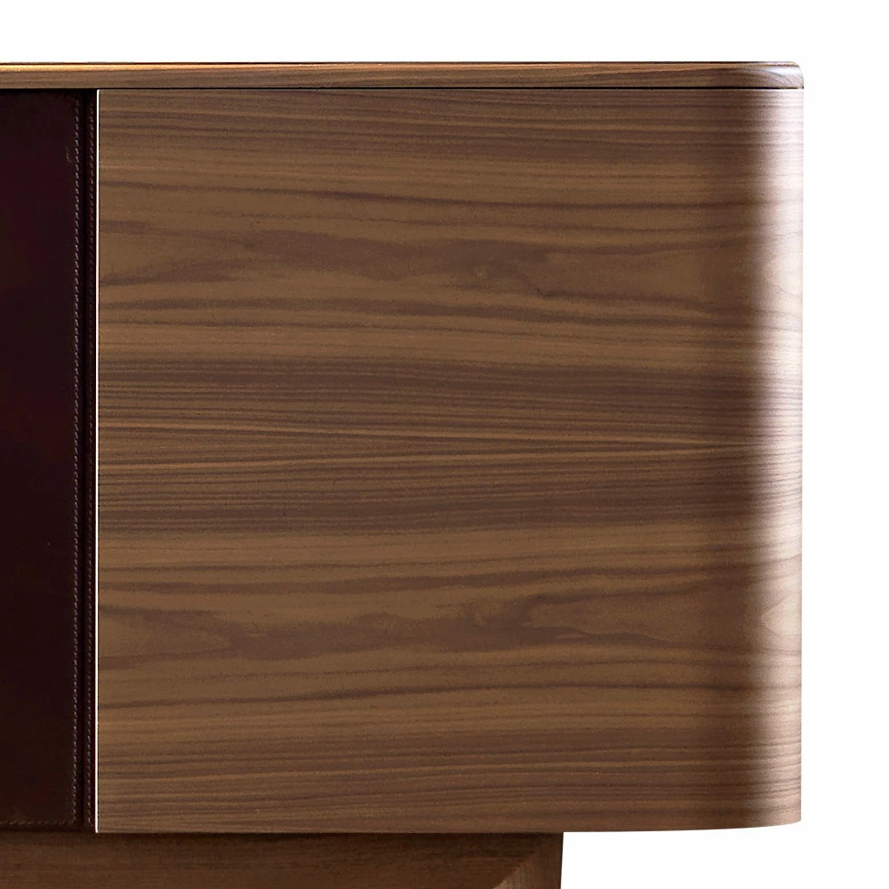 De voorkant en de binnenkant van de laden zijn bedekt met natuurlijk leder, terwijl in het centrale deel planken in meerlagig gefineerd met canaletto walnoot zijn.