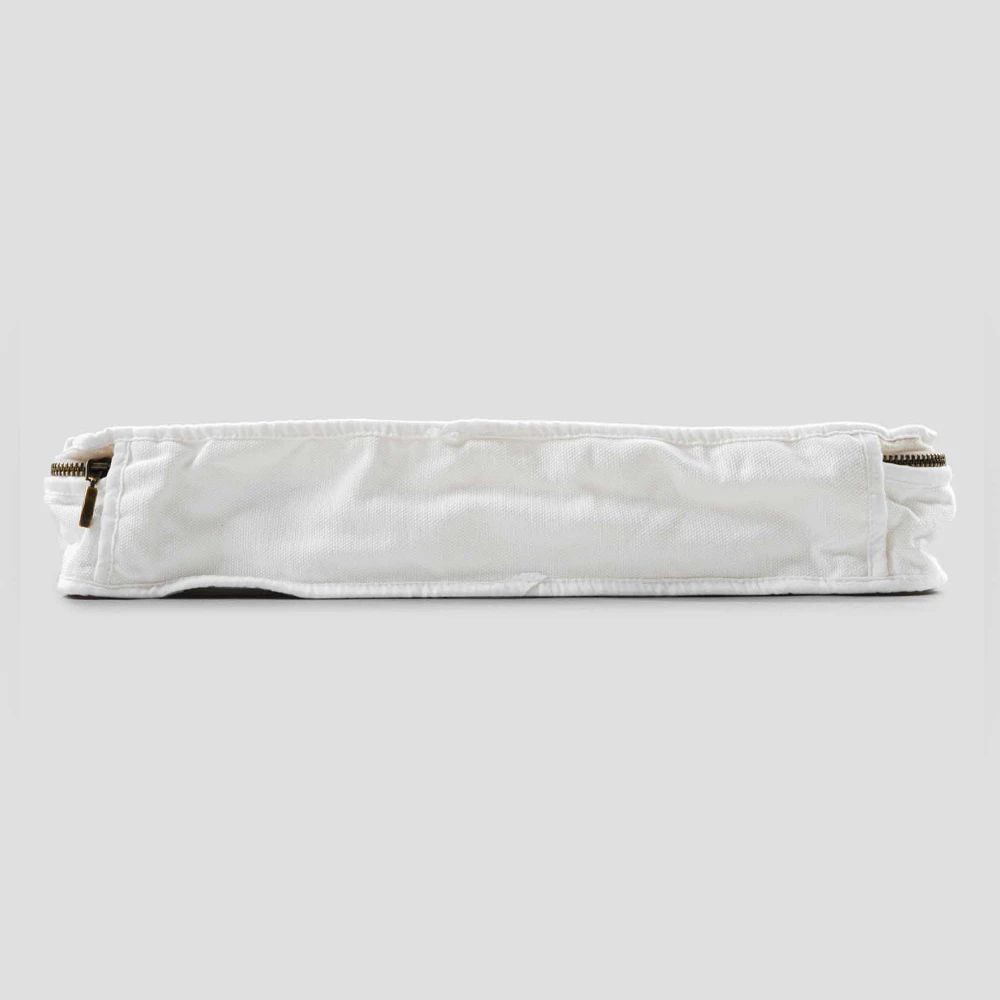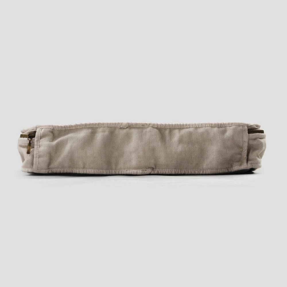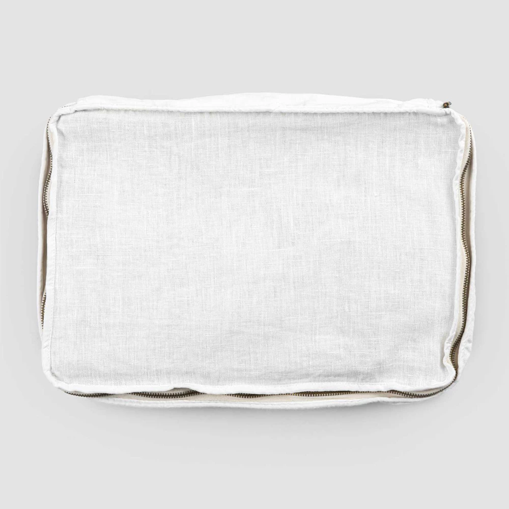 De waarde van traditie voegt zich bij de moderne levensstijl met deze grote rechthoekige cosmetische tas van linnen en katoen met ritssluiting.