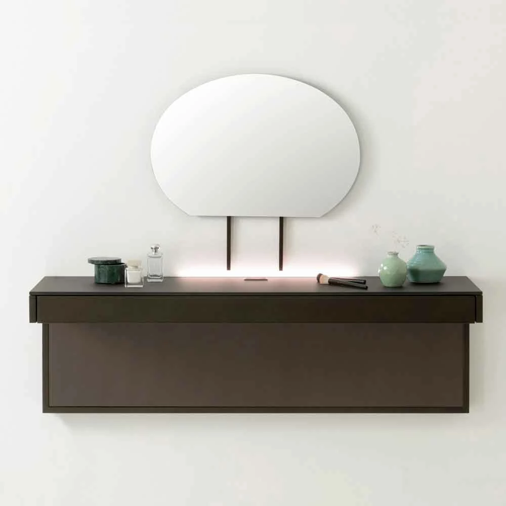 Verfijnde afwerkingen en kleuren samen met hoogwaardige grondstoffen geven leven aan een uiterst exclusief meubelaccessoire, ideaal voor wie op zoek is naar een oplossing die zowel praktisch als design is. Om de waarde ervan te verhogen, is de specifieke hangende structuur met beperkte afmetingen die het mogelijk maakt om een functioneel product met beperkte afmetingen te verkrijgen. Het frontpaneel samen met het kabelgat zorgen ervoor dat u draden, stopcontacten en wifi-stations kunt verbergen, waardoor u een schoon en overzichtelijk resultaat krijgt. Het eindresultaat is daarom een tv-meubel met een fascinerende esthetiek die een belangrijke rol kan spelen in woon- of slaapkamers met moderne meubels.