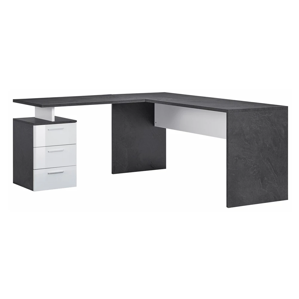 Hoekbureau van gepolijst melaminehout, 2 afwerkingen gemaakt in Italië.