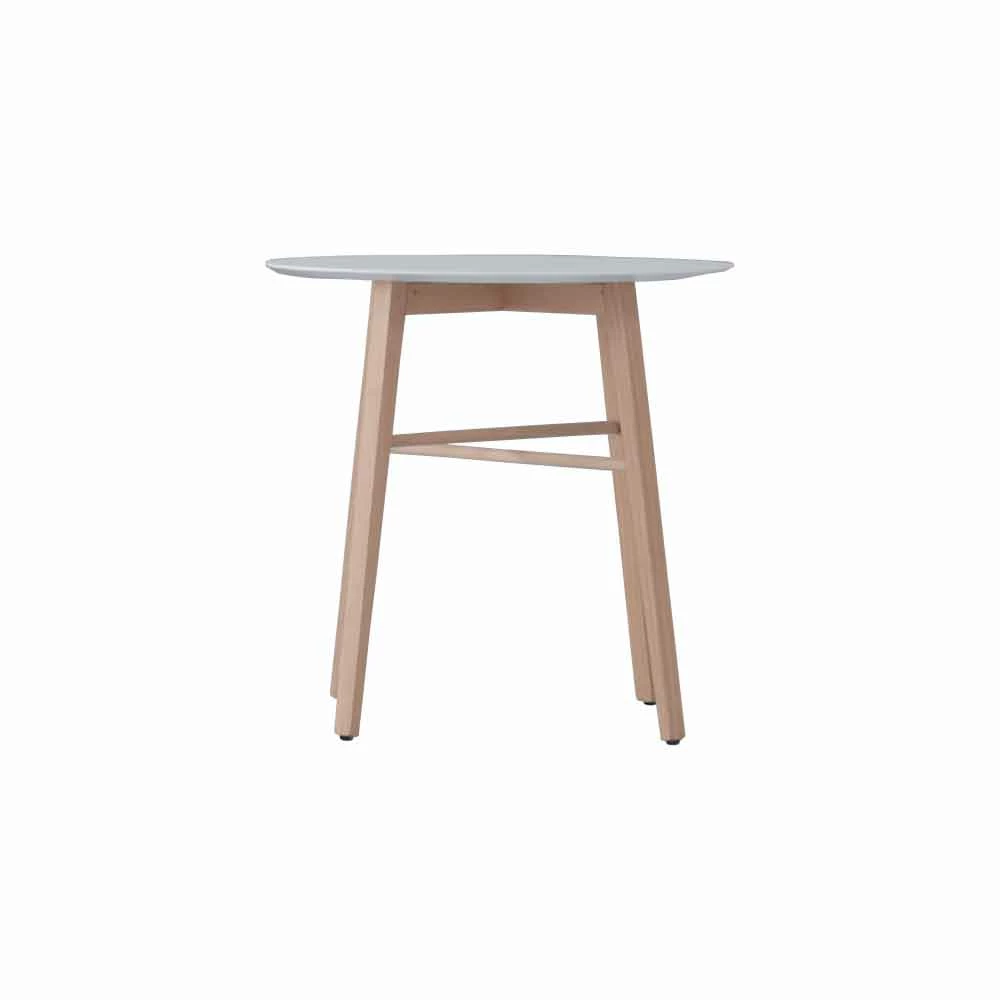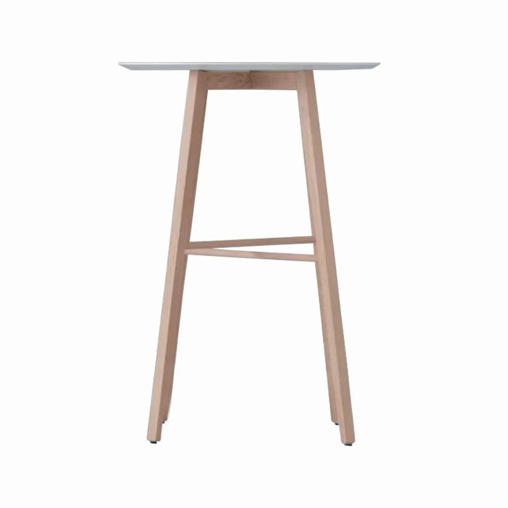In feite ondersteunt de kruisvormige voet in massief eiken met vier poten een MDF- blad bedekt met een witte polymeerplaat.