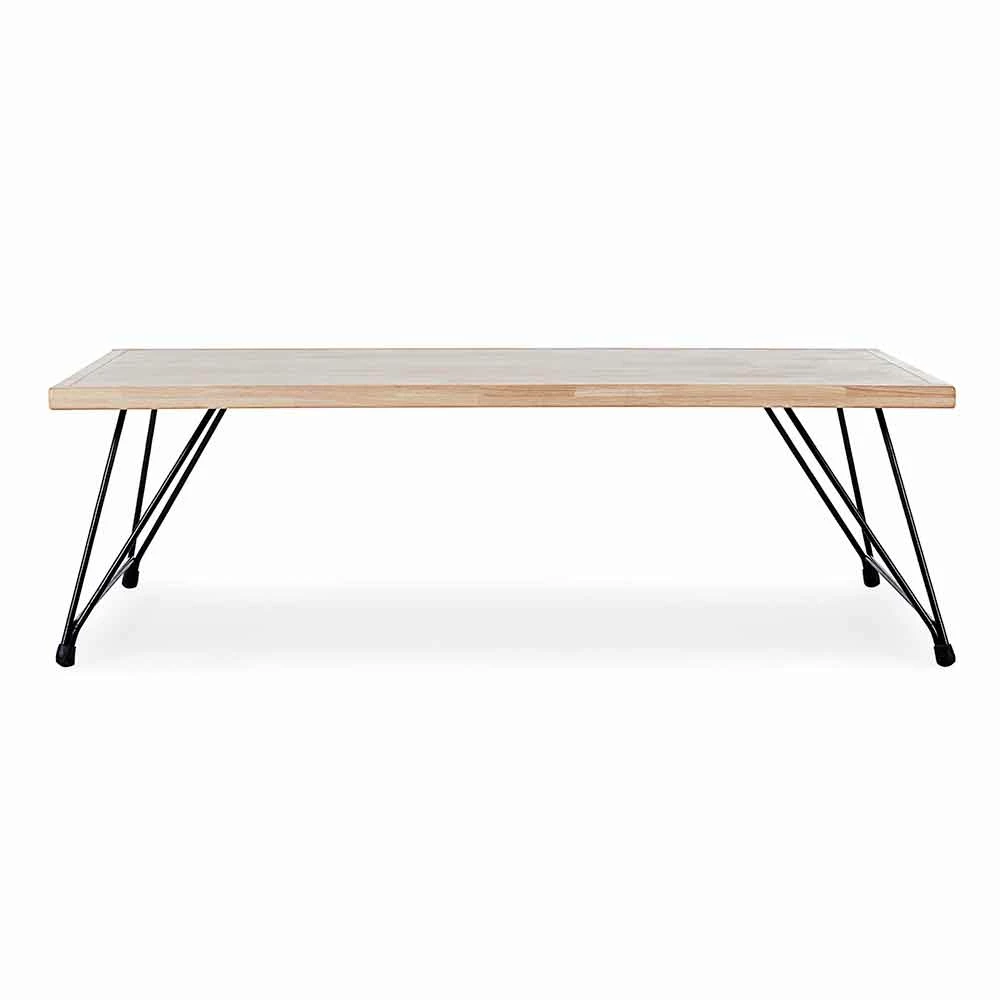 Blad van rubberhout met wasafwerking. Stalen poten met epoxy poedercoating om te monteren.