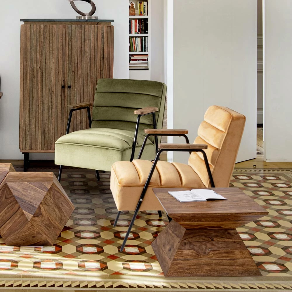 Salontafel voor de woonkamer met een piramidaal ontwerp in sheeshamhout.
