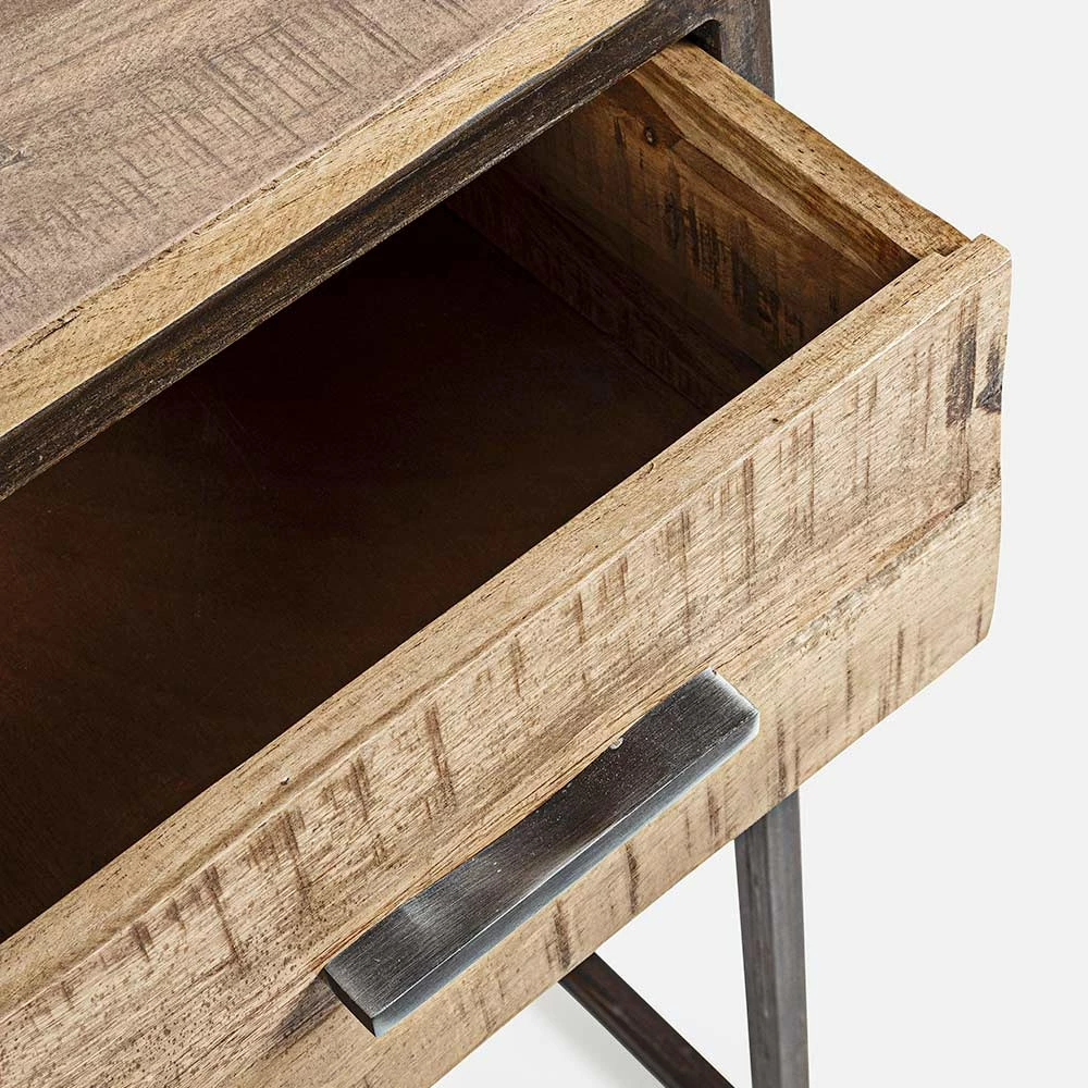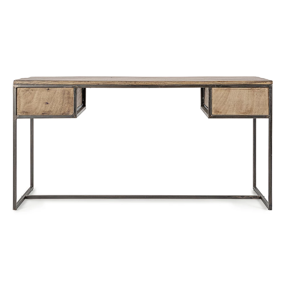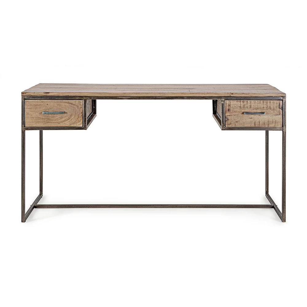 Bureau van staal en acaciahout met 2 lades in industriële stijl.