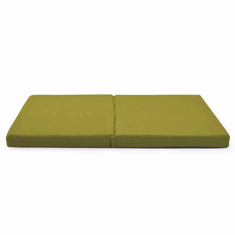 Het kussen is in het midden verbonden waardoor twee verschillende maten mogelijk zijn, afhankelijk van het feit of het al dan niet is geopend.