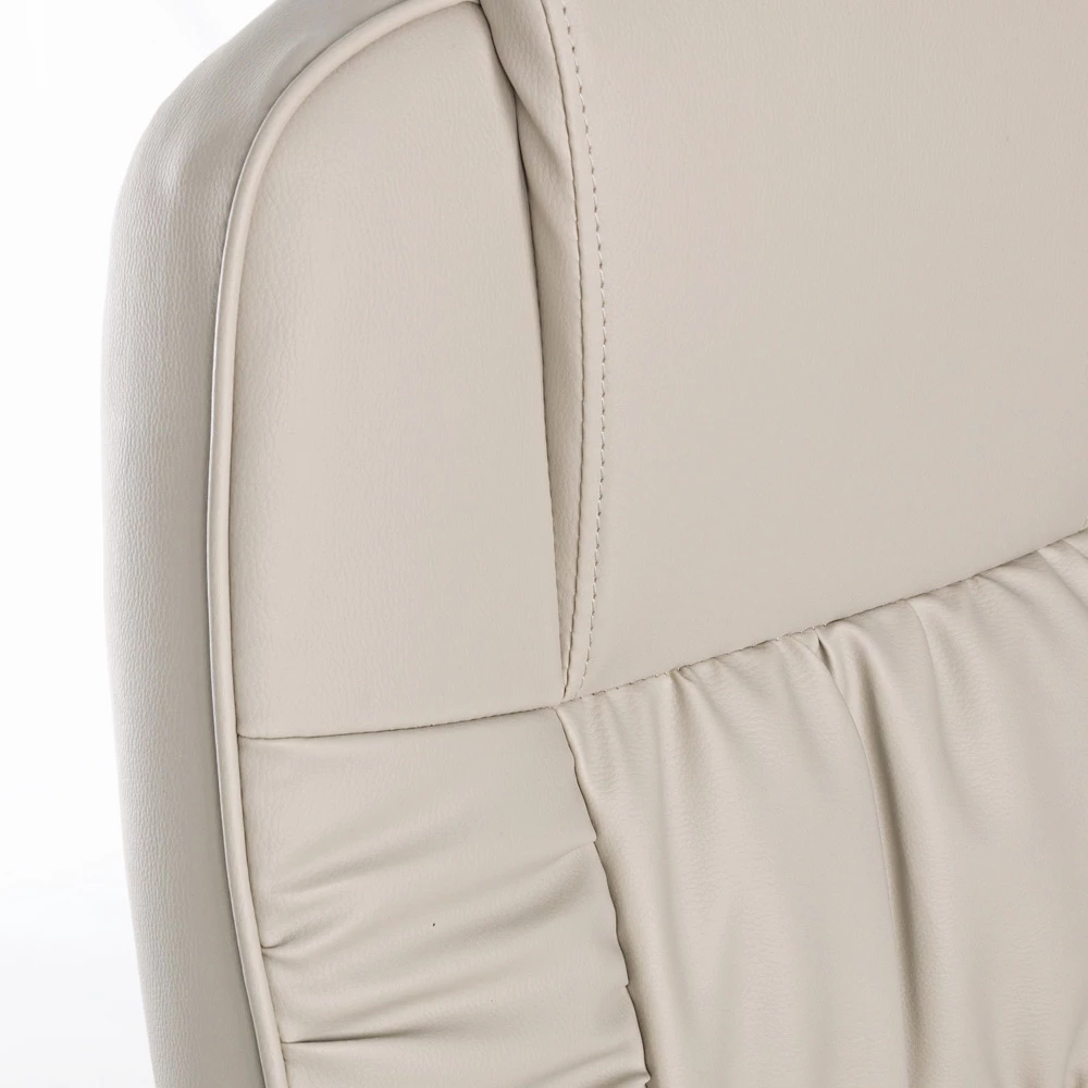 De in hoogte verstelbare zitting en rugleuning zijn opgevuld met polyurethaanschuim en bekleed met kunstleer .