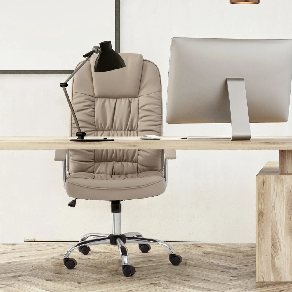 Ergonomische bureaufauteuil in staal met armleuningen en imitatieleer met 3 afwerkingen.