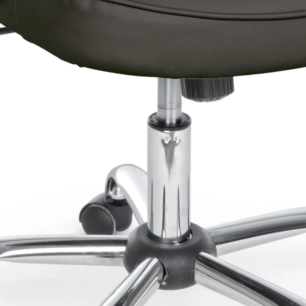 Deze bureaufauteuil is gemaakt met een solide onderstel in verchroomd staal met een diameter van 60 cm en nylon wielen .