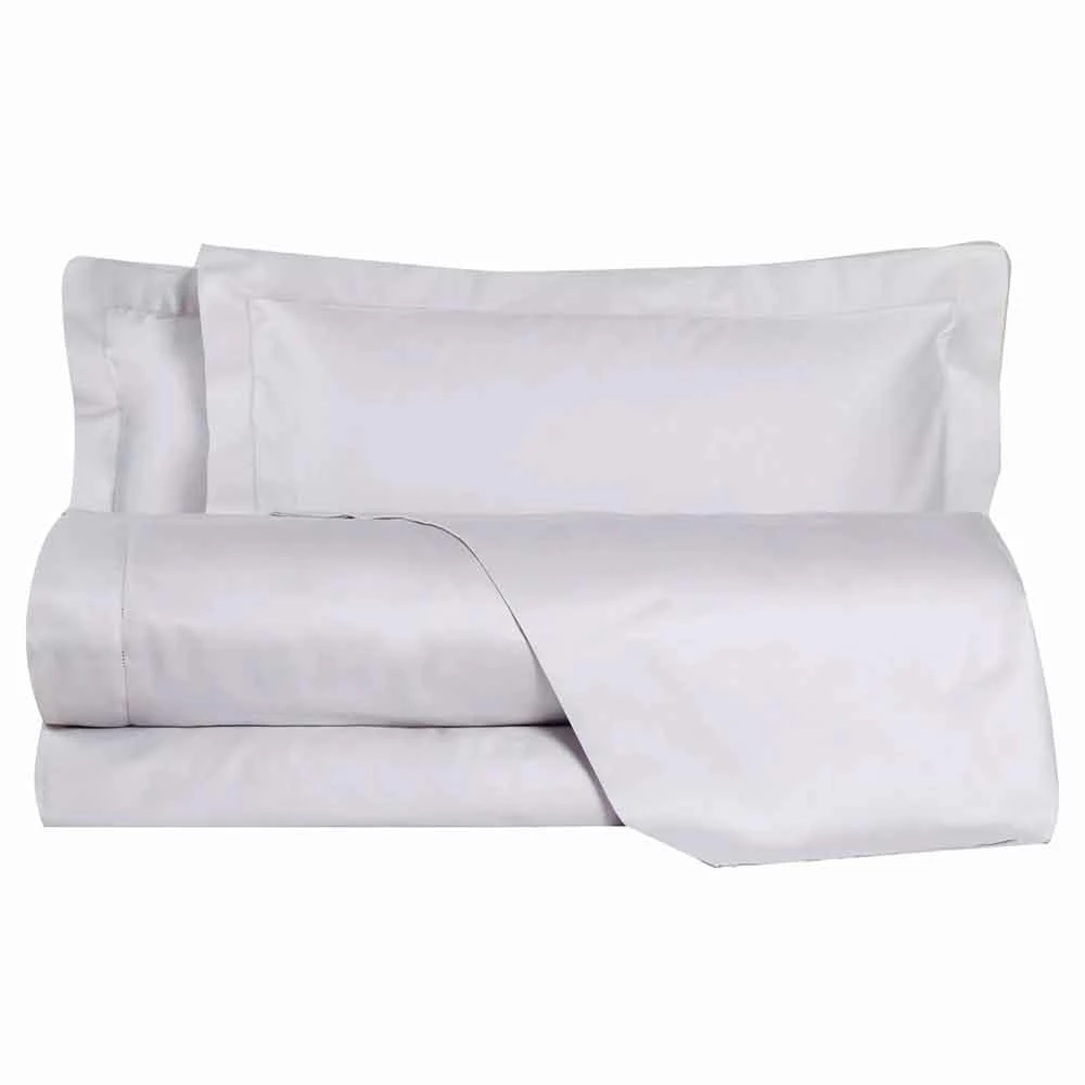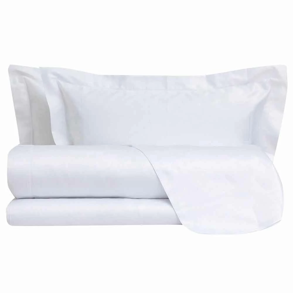 Gemaakt van 100% katoen satijn gemaakt in Italië met 200 draden, ze omvatten het onderlaken, de bovenkant en kussenslopen met drie vliegwielen, afgewerkt met een lichte en delicate ajourzoom .