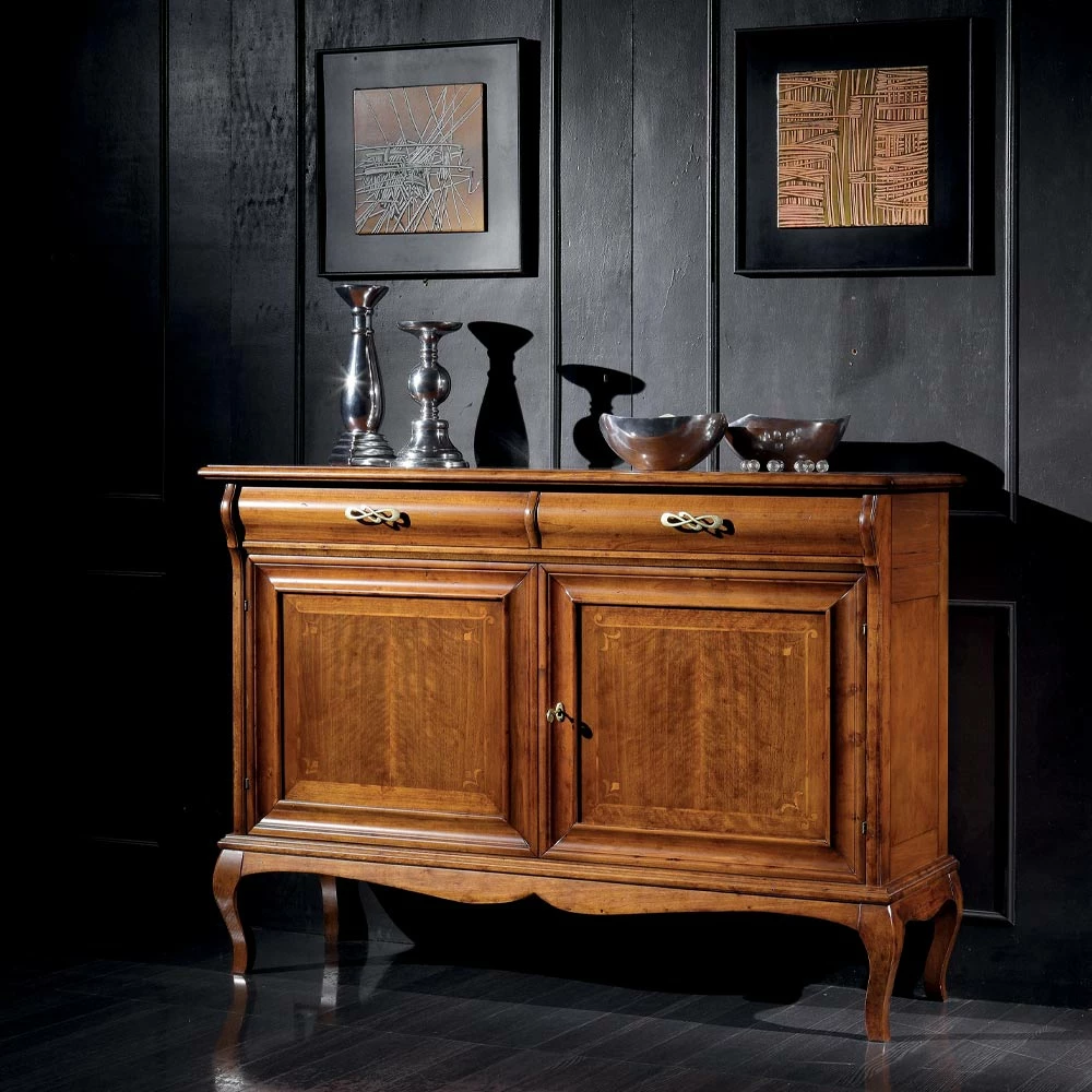 Klassieke stijl woonkamer dressoir gemaakt van hout met walnoot afwerking . Elegant maar tegelijkertijd praktisch omdat het 2 deuren en 2 lades heeft. Uniek en verfijnd, het is volledig gemaakt in Italië en handgemaakt door bekwame meesters , afgewerkt met wijsheid en smaak voor elegantie. De productie wordt uitgevoerd met behulp van fijne materialen en het werk wordt met de hand uitgevoerd met de grootste zorg en professionaliteit die Made in Italy- producten onderscheidt.